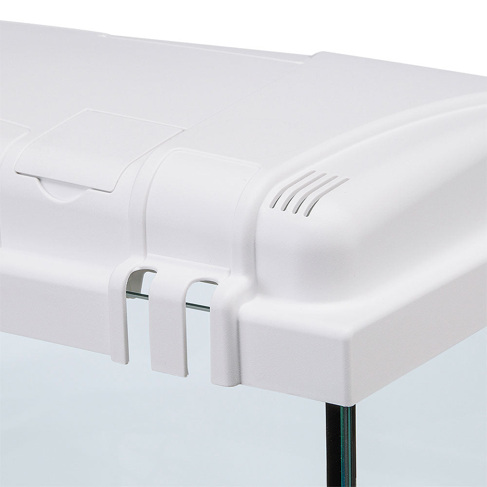 Capri 60 Led está preparado para añadir accesorios: una útil trampilla en la tapa permite instalar un comedero automático para peces mientras que unos específicos cierres extraíbles permiten pasar los tubos de envío y aspiración de un filtro externo. La tapa está dotada de una amplia trampilla en la parte delantera, que se puede abrir para facilitar el mantenimiento.