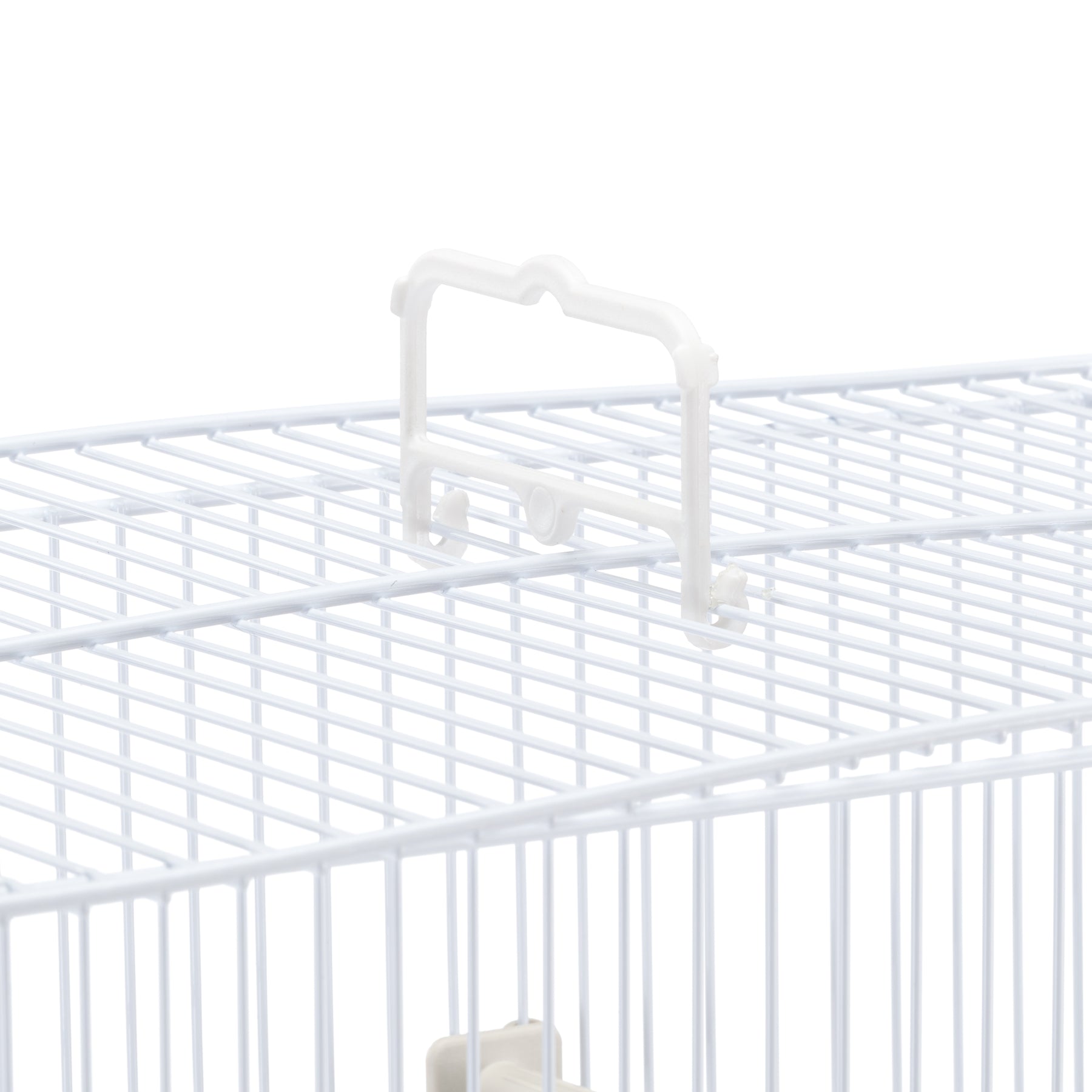 Giusy es una jaula básica y práctica con una robusta base plástica y estructura de malla de alambre que ha sido barnizada de blanco. Es ideal para canarios o pequeñas aves exóticas, es cómoda y está equipada con todos los accesorios que necesita su mascota, incluye un bebedero plástico y perchas, innovadores comederos giratorios Brava 1, haciendo extremadamente fácil alimentar a sus aves desde fuera de la jaula. Esta jaula es también fácil de cuidar y estará siempre limpia y ordenada, gracias a su bandeja de recogida de suciedad.