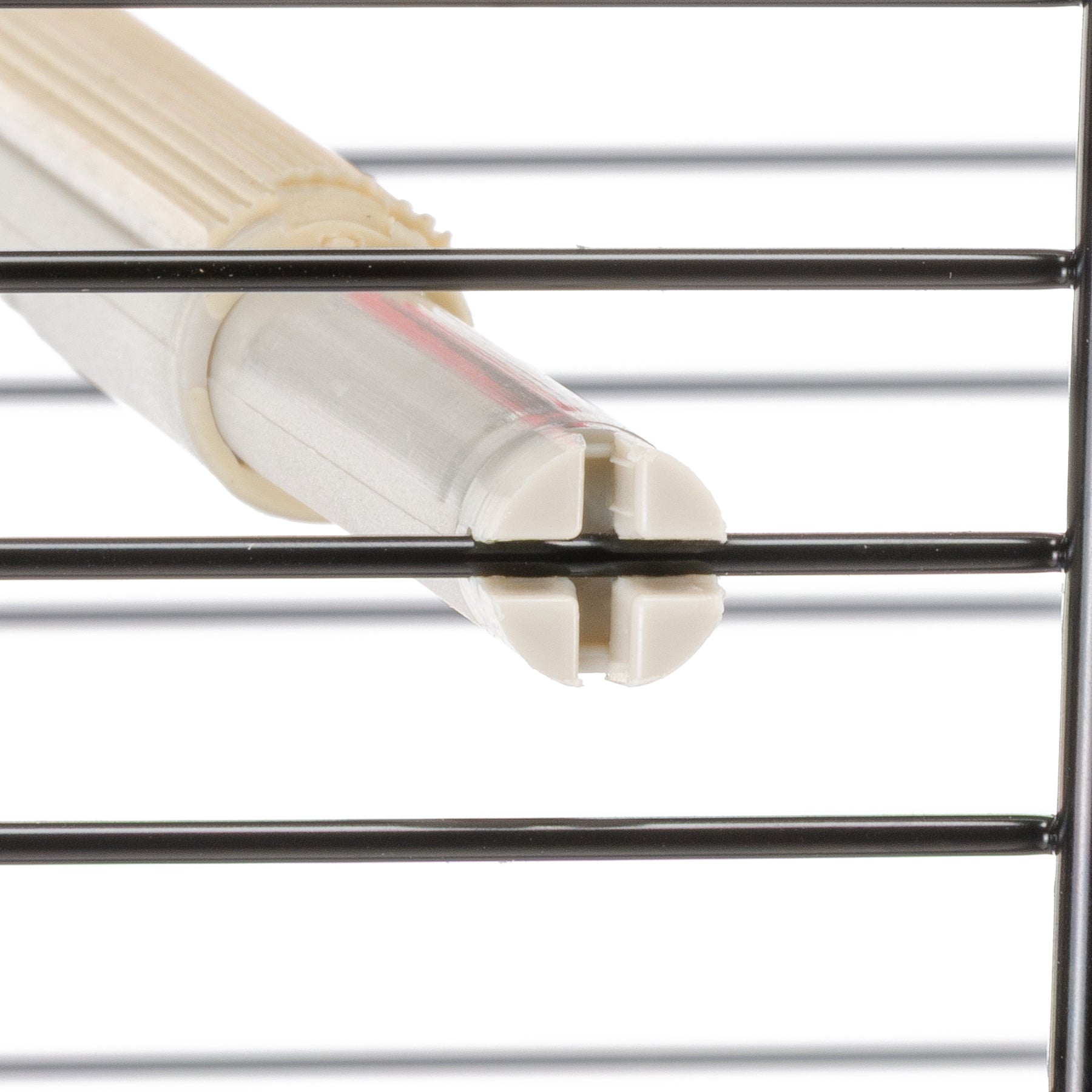 Hay una conveniente bandeja extraíble en la parte inferior de cada jaula, para facilitar la limpieza (la jaula más grande tiene dos bandejas).