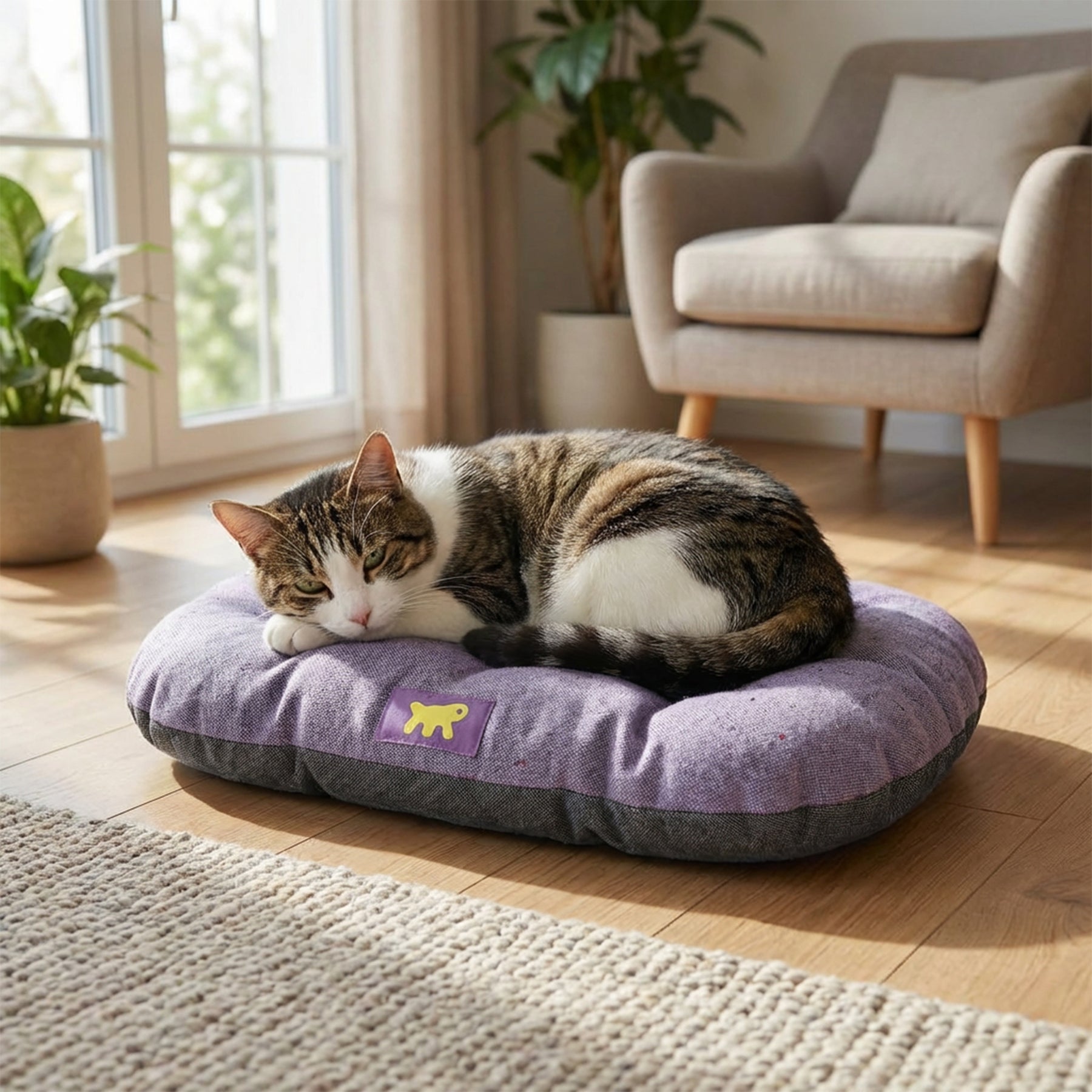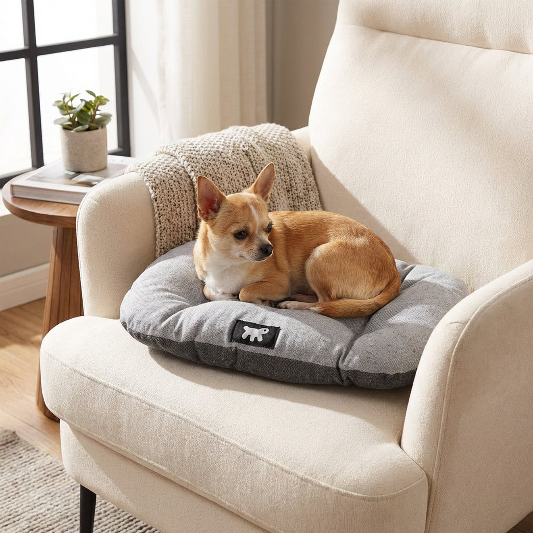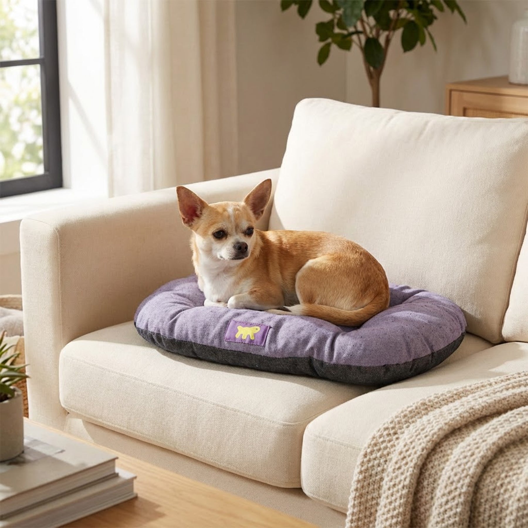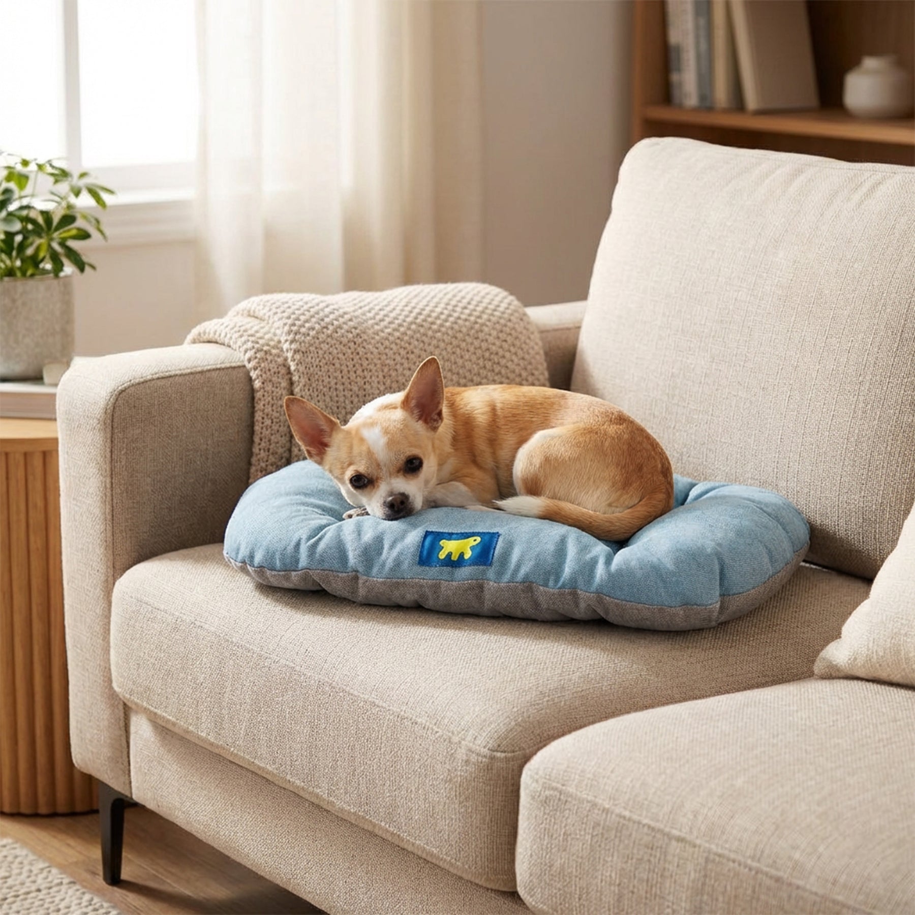 - Cojín para perros y gatos disponible en modernas combinaciones de colores
