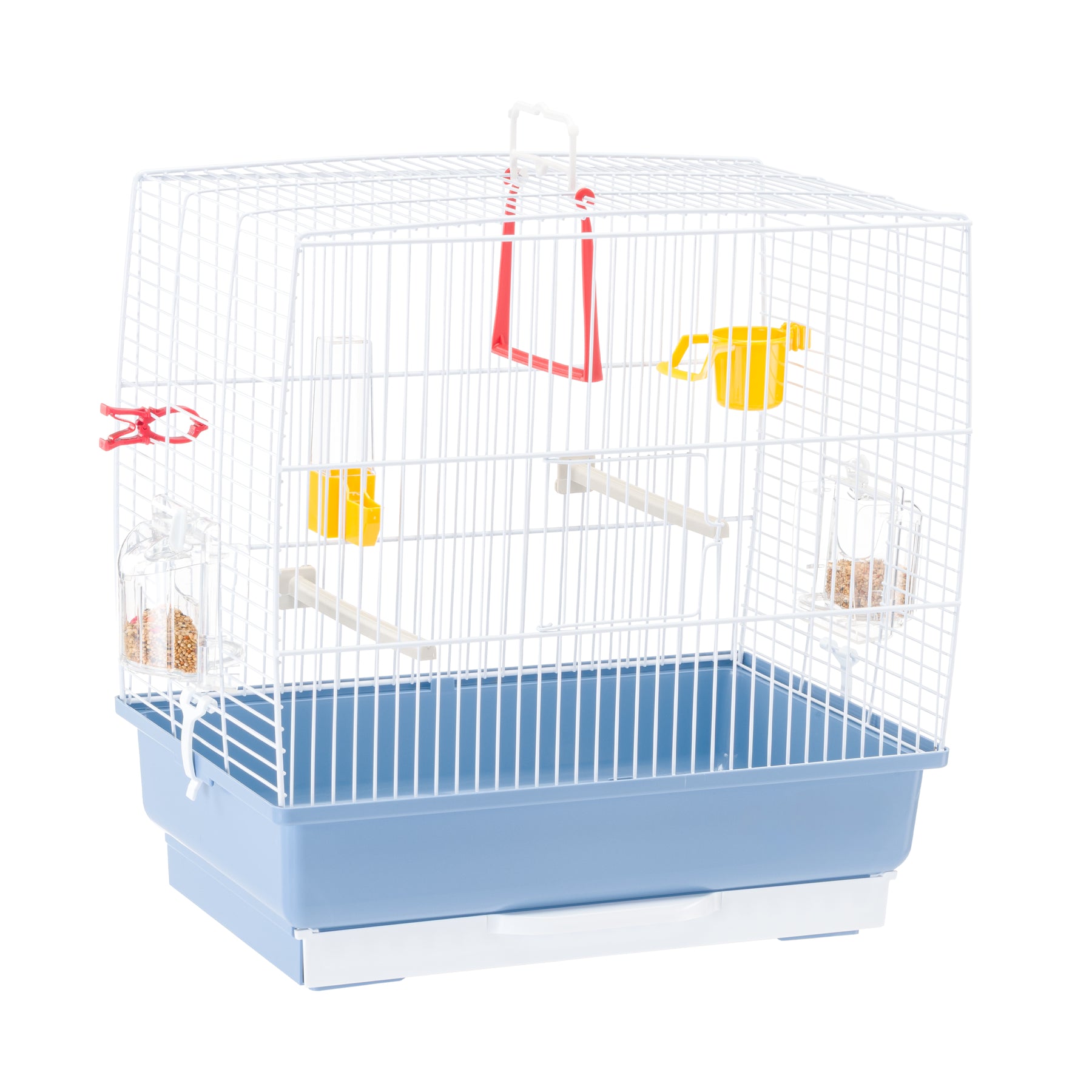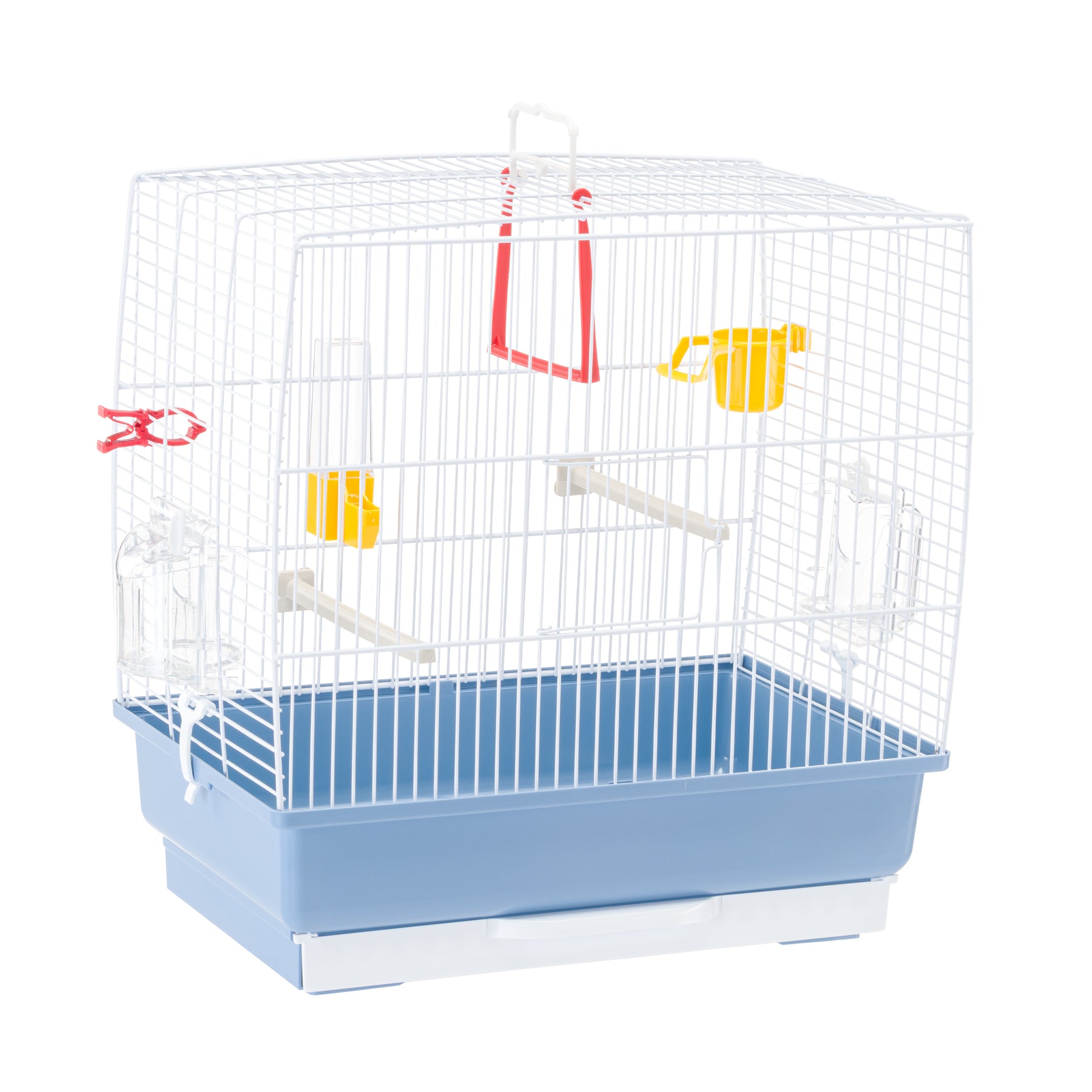 Rekord 2 es una jaula rectangular para canarios y otros pájaros pequeños. Tiene asa de transporte y está hecha de malla de alambre que ha sido barnizado de blanco, con una robusto base de plástico. Rekord 2 viene completa con accesorios esenciales, incluyendo el bebedero plástico, perchas, y el comedero Brava 1 giratorio extraíble. La limpieza es rápida y fácil, gracias a una bandeja de recogida de suciedad.