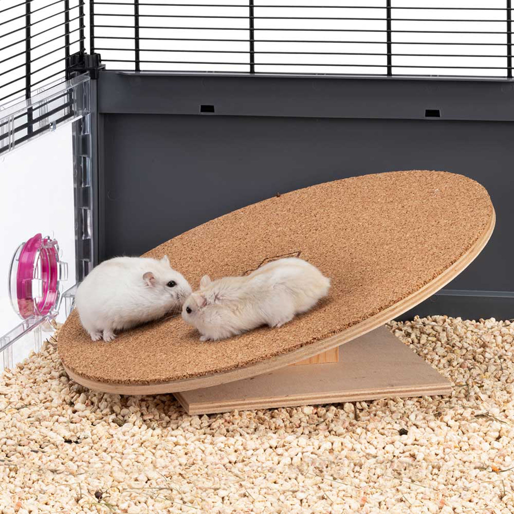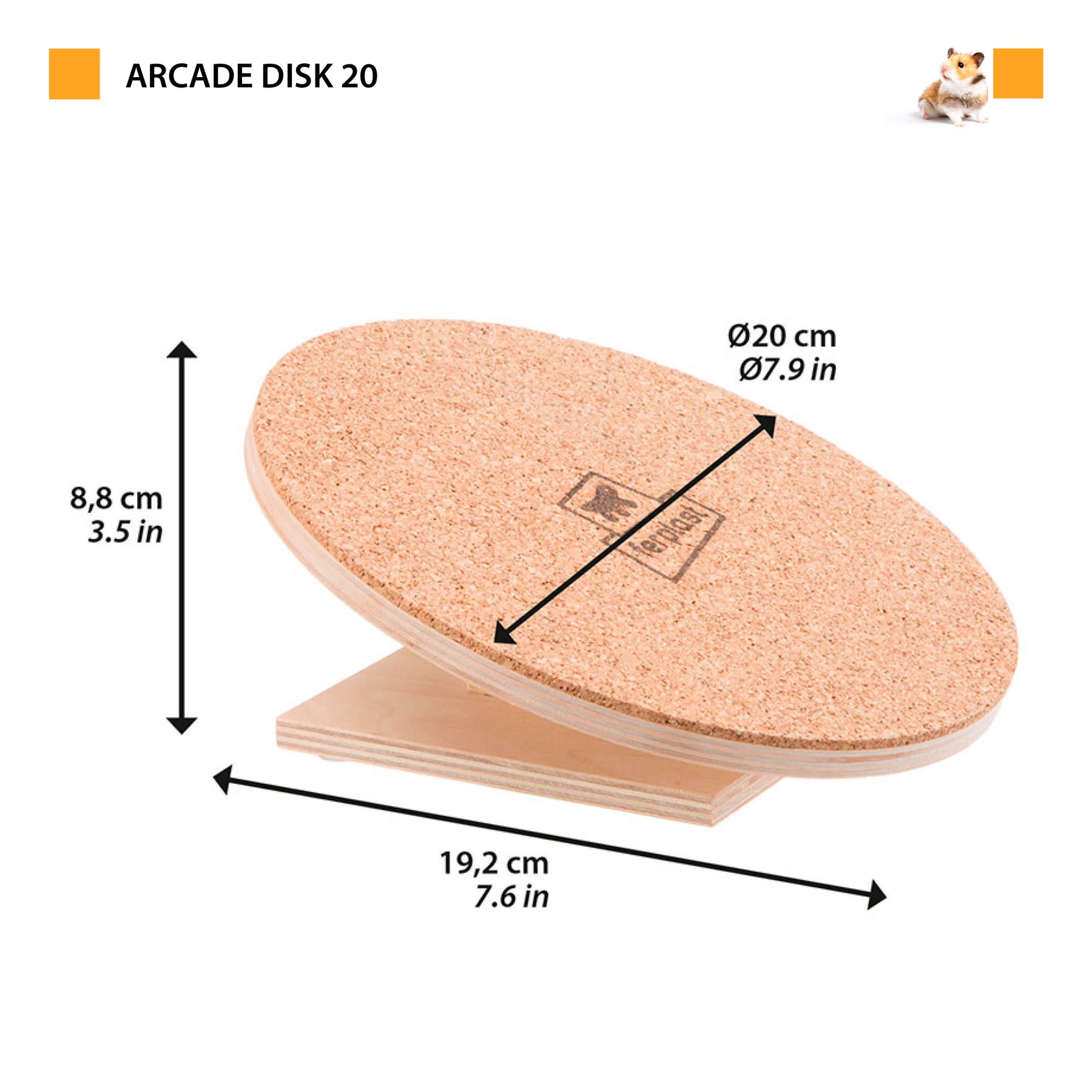 Esta rueda para roedores es fundamental para mantener a tu amigo activo y en perfecto estado de salud. Es un disco de ejercicios de madera con una superficie de corcho antideslizante que asegura un buen agarre mientras corres. El material natural de alta calidad es seguro para mascotas y no tóxico. La rueda descansa sobre una gran base para garantizar una buena estabilidad. Incluido encontrará 4 tapas antideslizantes. Fácil de montar. Disponible en diferentes tamaños a elegir según tus necesidades o el tamaño del roedor: modelo pequeño (20 cm de diámetro) apto para hámsteres y ratones, modelo grande (30 cm de diámetro) para chinchillas y ratones.