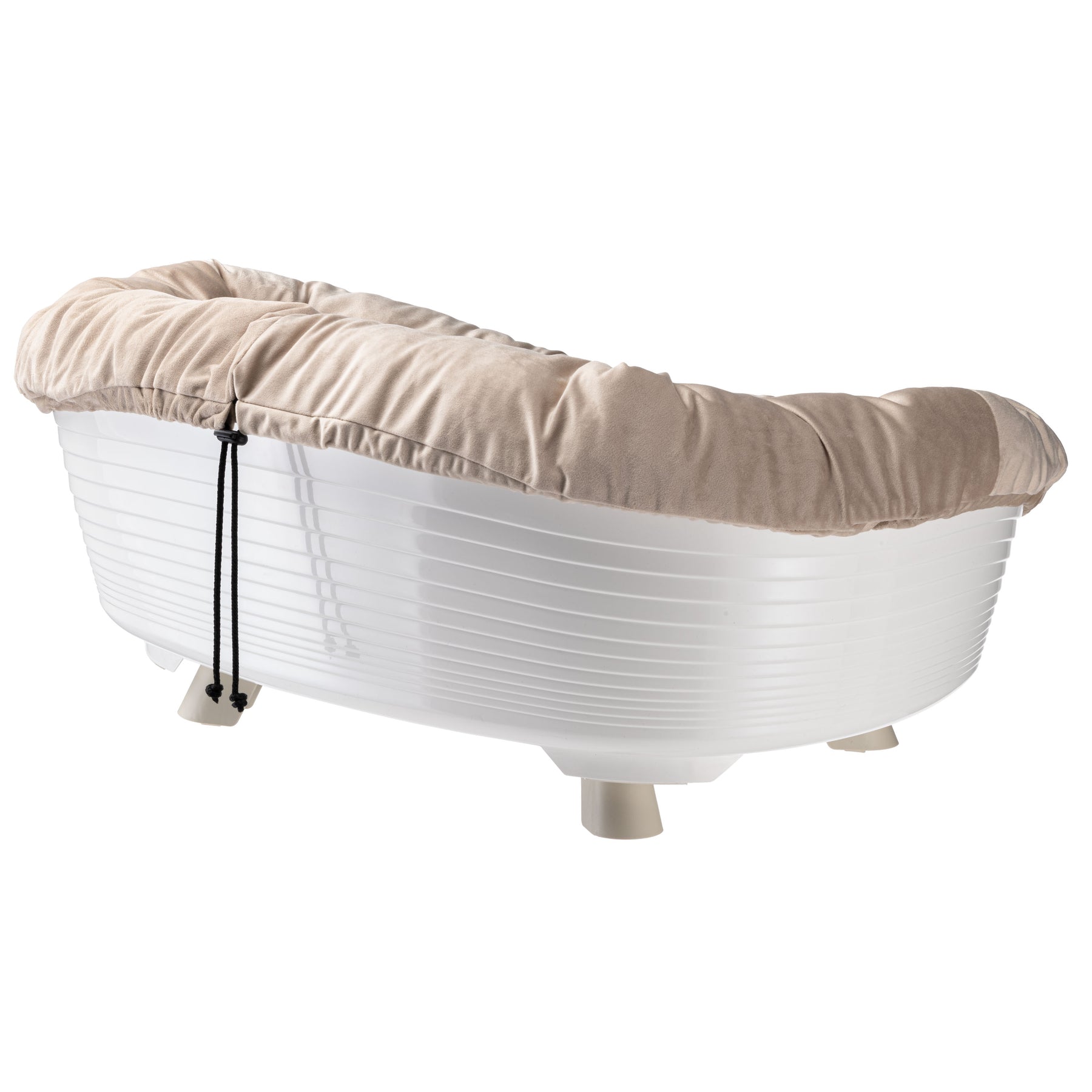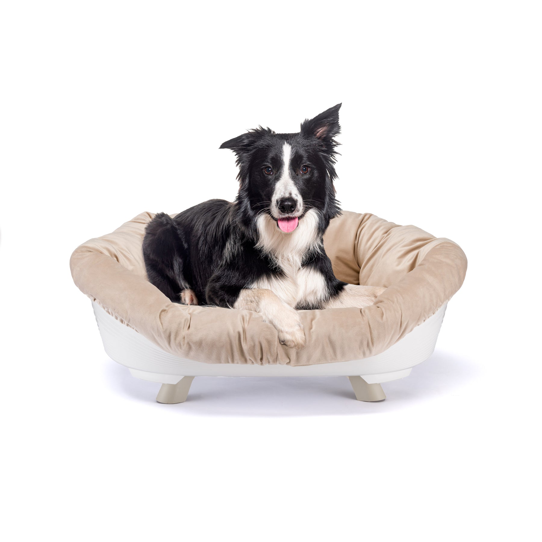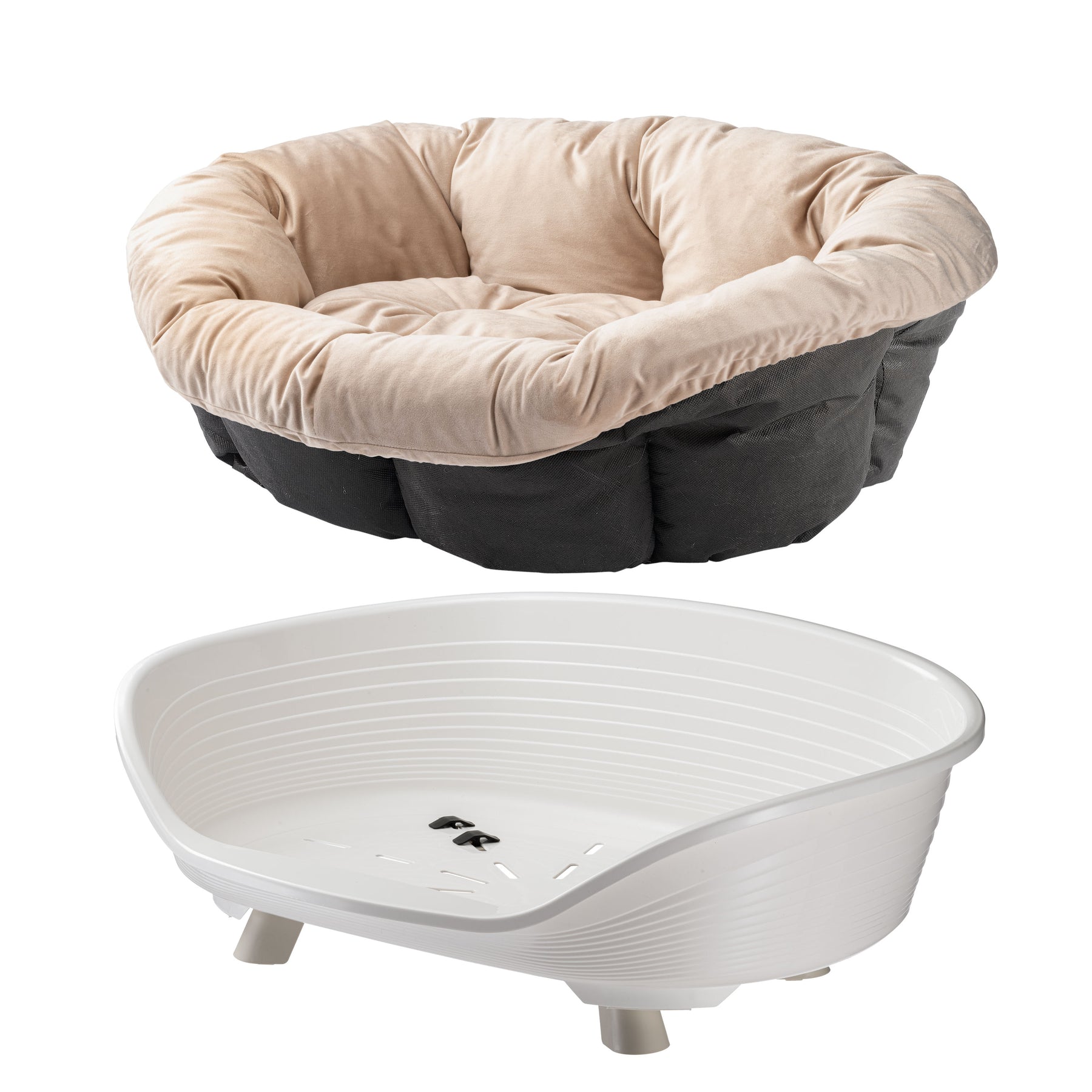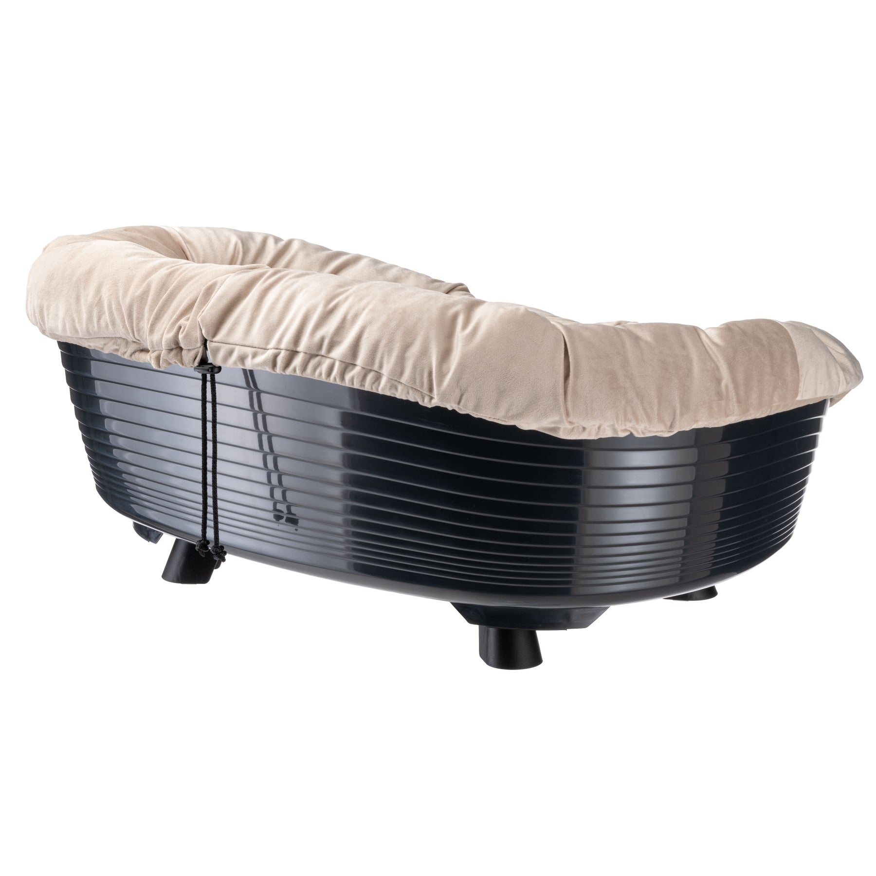 Sofà Throne es una cómoda cama para perros y gatos compuesta por una base rígida de resina termoplástica y una suave funda de terciopelo. La base presenta bordes altos para apoyo y protección y una entrada baja para facilitar el acceso. Perfecta para el descanso diario, la cama Sofà Throne también cuenta con una práctico soporte para la barbilla de tu mascota y un fondo perforado para una ventilación adecuada. El elegante forro de terciopelo es extraíble y convenientemente lavable a 30°, ofreciendo un confort supremo y una higiene impecable. Con patas antideslizantes extraíbles, la cesta se mantiene estable y elevada del suelo, proporcionando un buen aislamiento del mismo.