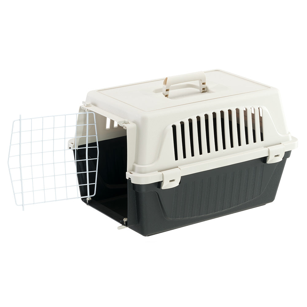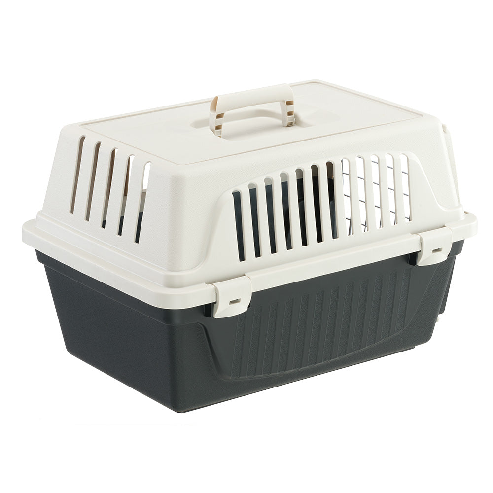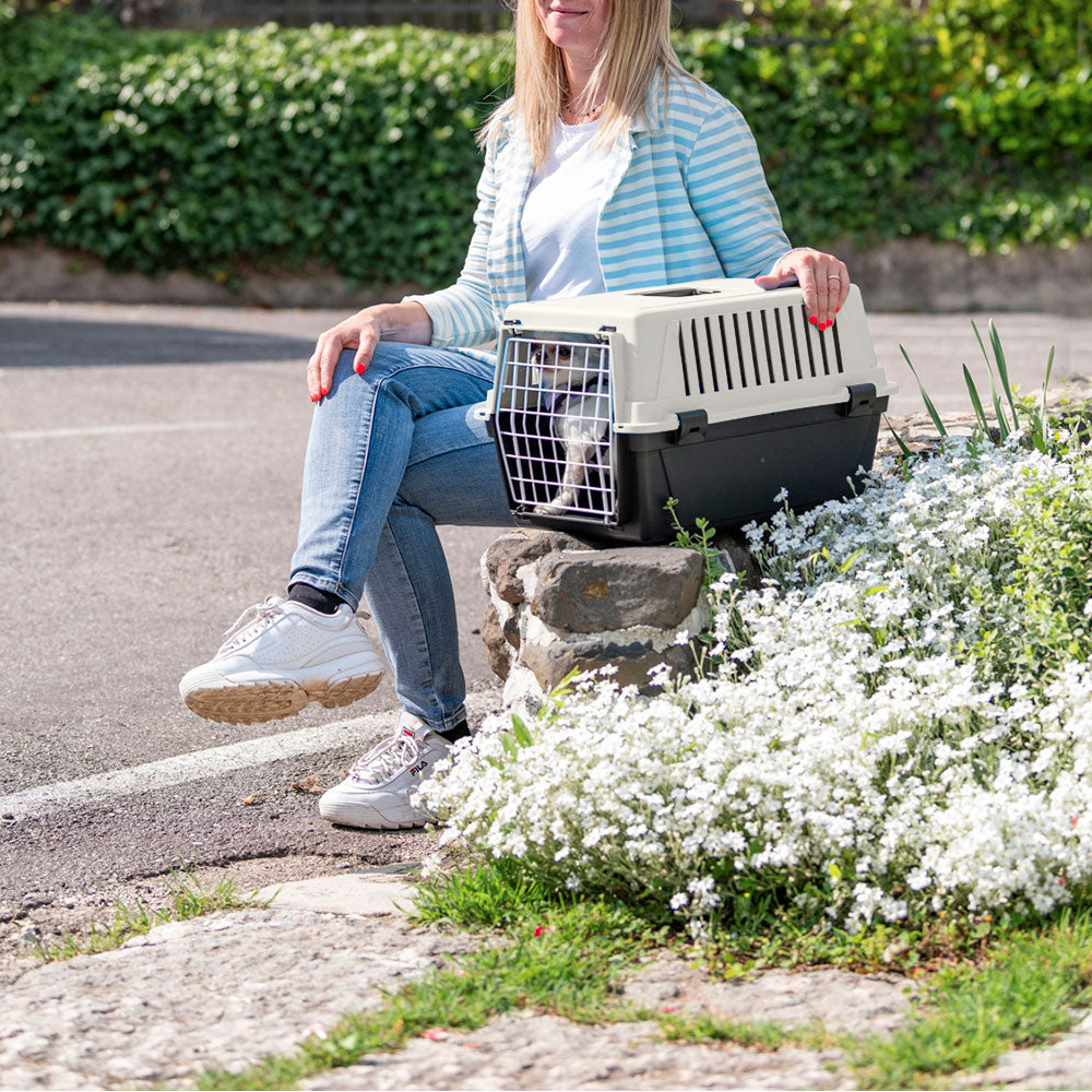 Atlas EL es lo más básico que tenemos en artículos para transportar a tu mascota y tiene múltiples funciones. Atlas EL es fácil de llevar contigo gracias a su asa fija y es ideal para viajar con tus mascotas en los medios de transporte más comunes (coche, tren, barco, avión). Esta jaula de viaje para gatos y animales pequeños dispone de una sólida puerta de acero cubierto de plástico. Es muy robusta, gracias a su sistema de agarres laterales. Además, tiene aberturas laterales para la ventilación, que aseguran que haya siempre aire fresco dentro de la caja.