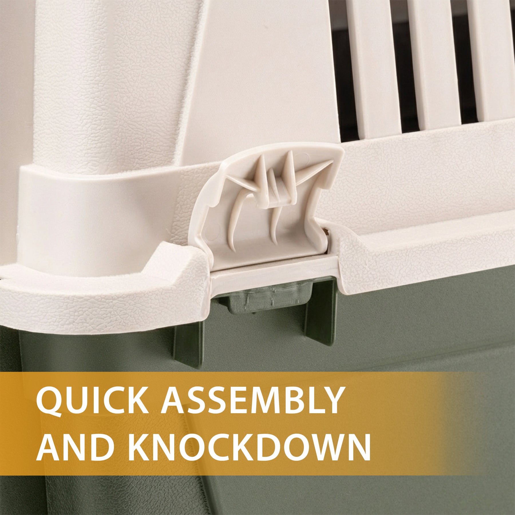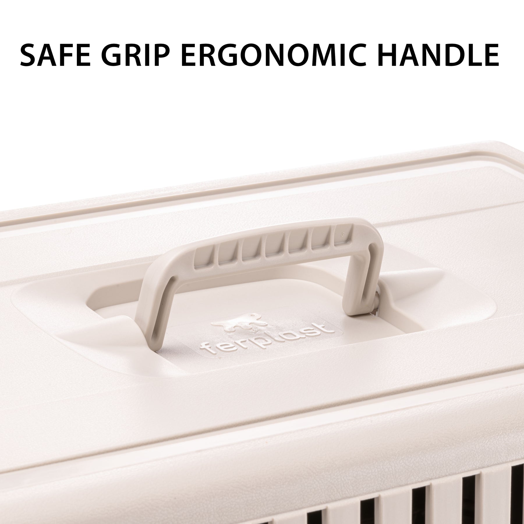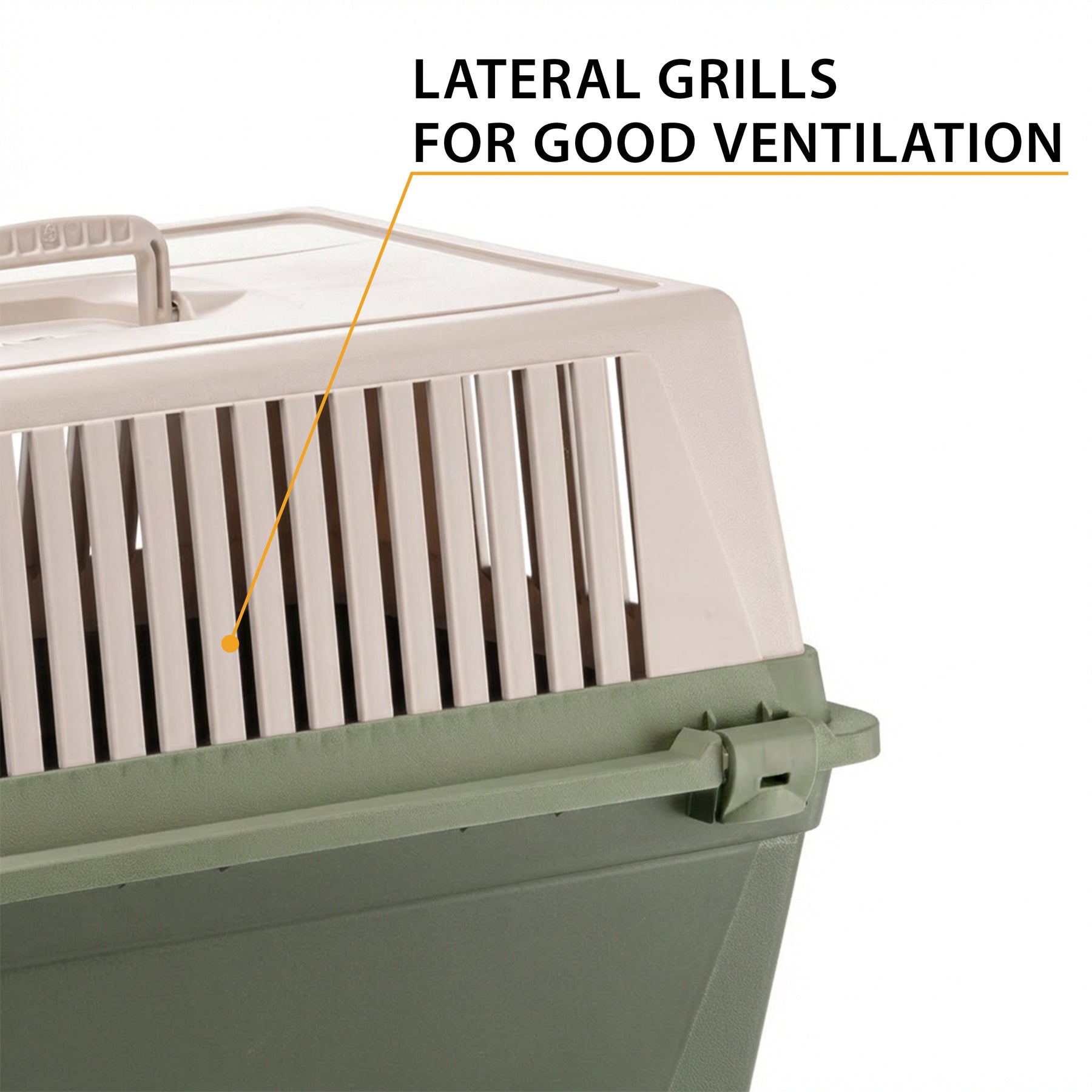 Atlas EL es lo más básico que tenemos en artículos para transportar a tu mascota y tiene múltiples funciones. Atlas EL es fácil de llevar contigo gracias a su asa fija y es ideal para viajar con tus mascotas en los medios de transporte más comunes (coche, tren, barco, avión). Esta jaula de viaje para gatos y animales pequeños dispone de una sólida puerta de acero cubierto de plástico. Es muy robusta, gracias a su sistema de agarres laterales. Además, tiene aberturas laterales para la ventilación, que aseguran que haya siempre aire fresco dentro de la caja.