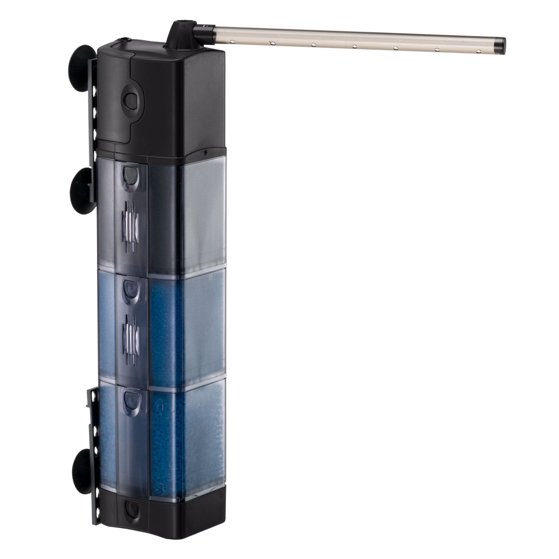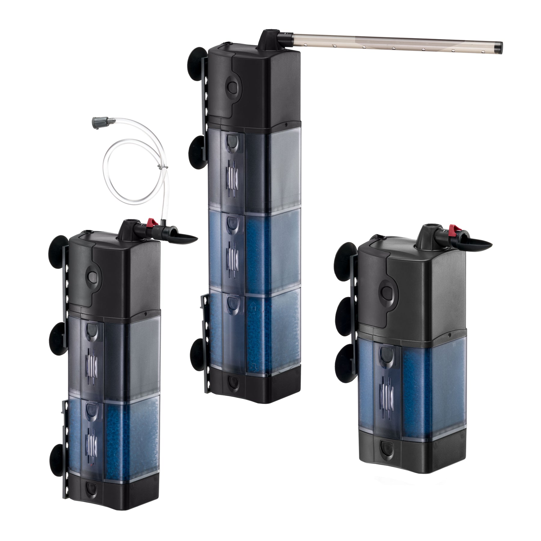 El filtro del acuario interior Blumodular está disponible en tres tamaños diferentes, con un volumen de filtro de máximo de 1 litro. También puede comprar algunos accesorios prácticos y repuestos como las esponjas sintéticas finas o gruesas y esponjas de carbón activo. Por separado, también puede adquirir los módulos que permiten la composición de filtro según sus necesidades.