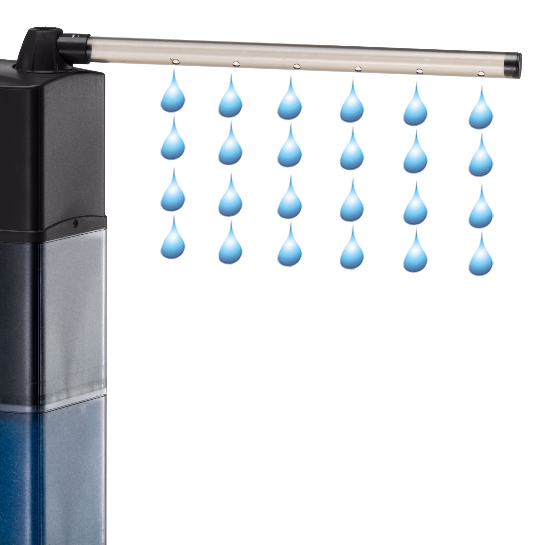 Blumodular es un innovador sistema de filtración interno para acuarios equipados con módulos que pueden ser combinados y añadidos a su gusto. Este filtro de acuario permite utilizar varios materiales simultáneamente, garantizando al mismo tiempo alta potencia de aspiración, excelente filtrado de flujo de agua de rápida capacidad. Dentro del filtro Blumodular, el agua fluye a través de todos los niveles de materiales filtrantes el líquido entra en por los lados, y luego es llevado hacia la parte inferior y desde el fondo luego comienza a elevarse: de esta manera la alta oxigenación del agua está garantizada también gracias a la barra pulverizadora y venturi kit (ambos incluidos) utilizada para crear burbujas y movimiento al agua. Los dispositivos de cierre cierran automáticamente la rejilla de entrada de agua para evitar que la suciedad regrese al tanque durante las operaciones de mantenimiento. Blumodular es difusor en varias direcciones y consta de boquilla regulable.