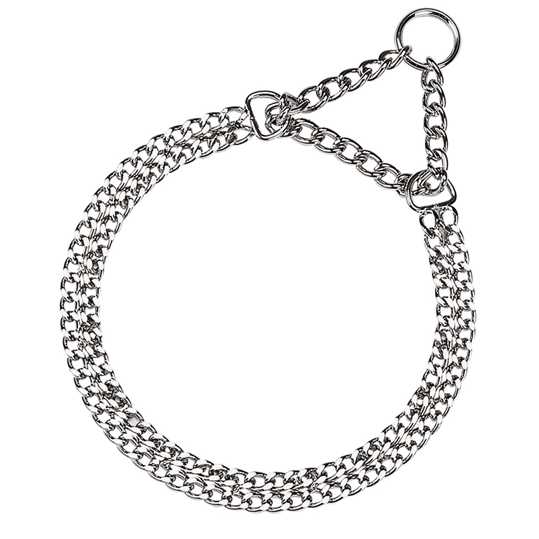 Chrome CSS es un collar hecho de eslabones de metal con un sistema de semi-estrangulamiento, ideal para entrenar a tu mascota. Al ser metálica su cadena es sólida y resistente, y cuenta con una anilla para enganchar la correa de tu perro. Los collares Chrome CSS están disponibles en 6 tallas, y por lo tanto para animales de todos los tamaños.