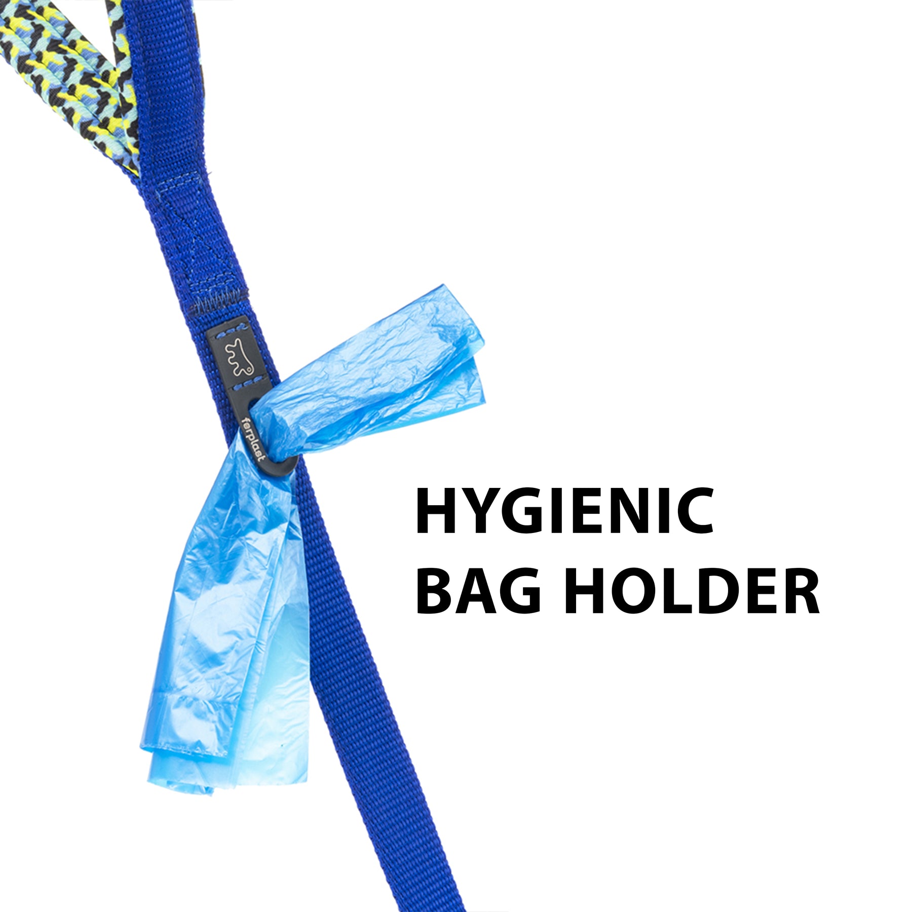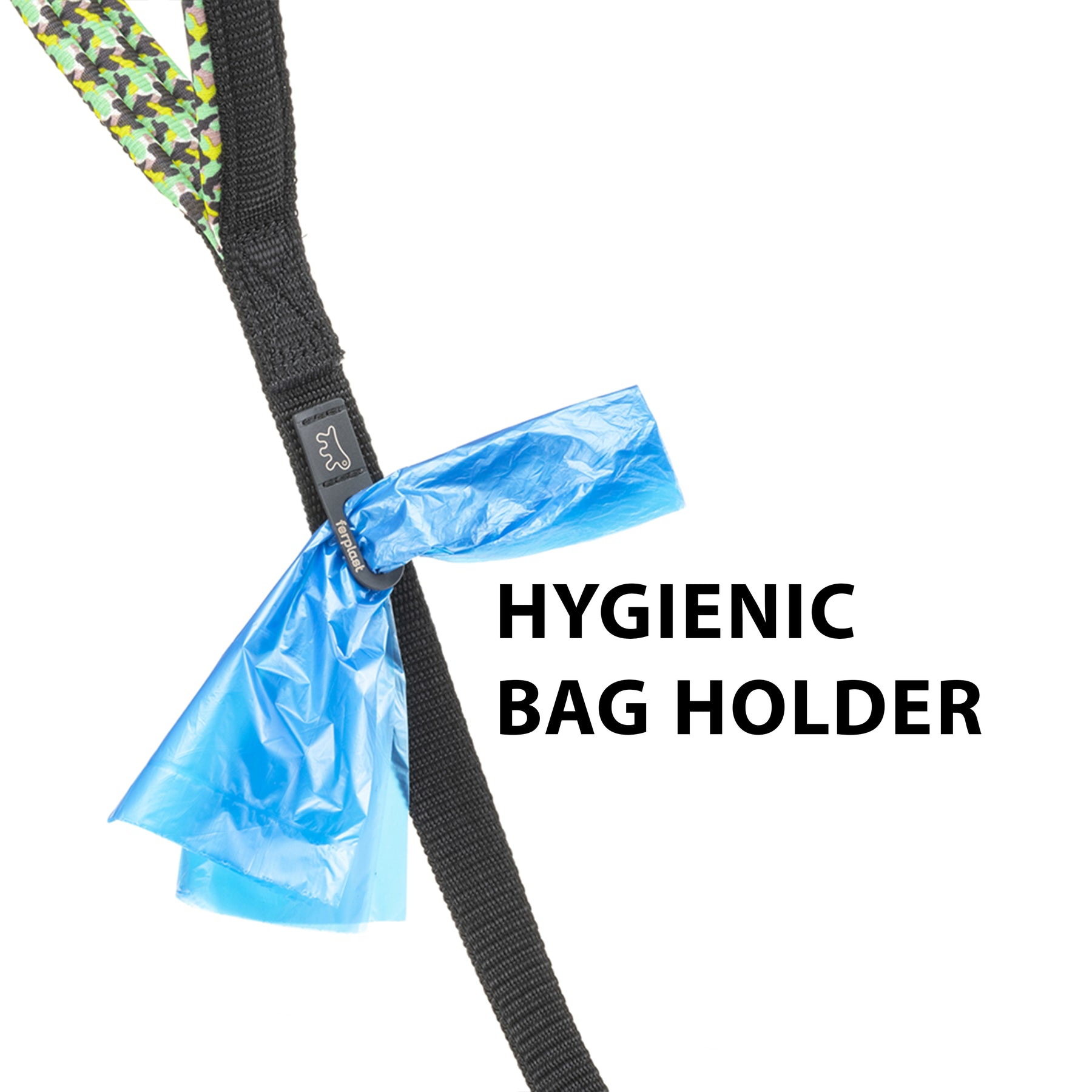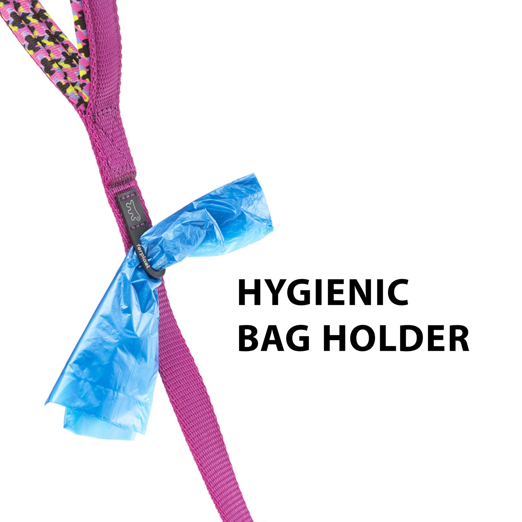 También está equipado de un práctico porta bolsas higiénico integrado en la cinta. Esto permite una gran practicidad durante las salidas con vuestro amigo, ya que podeis extraer fácilmente la bolsita del anillo sin buscarla dentro de vuestra bolsa.