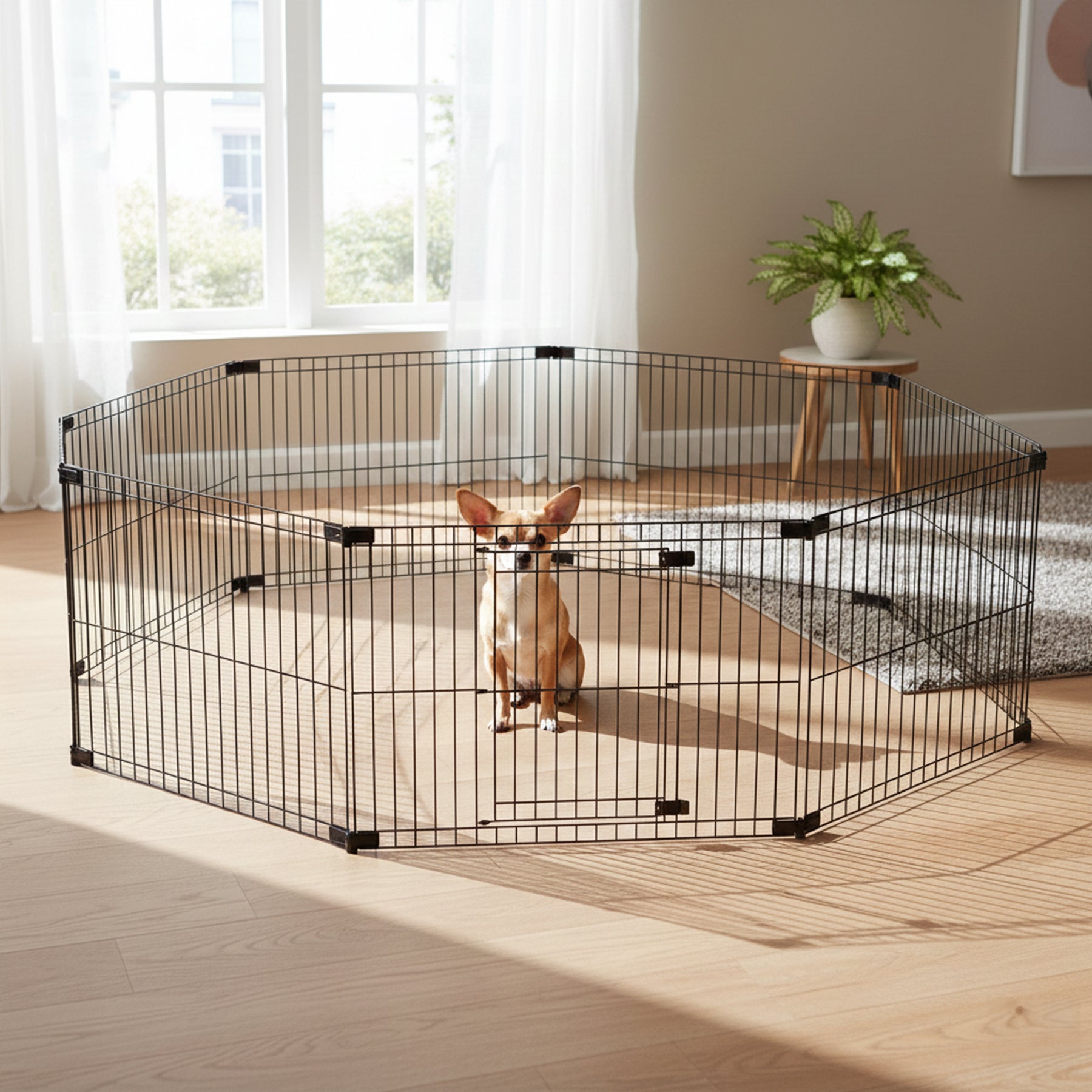 Parque para perros modular de metal, con 4, 6 u 8 paneles, totalmente configurable para interior y exterior.