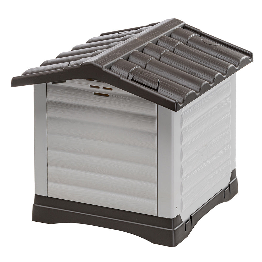 La caseta Dogvilla 50 es perfecta para alojar perros pequeños. Con su diseño compacto, garantizará el máximo confort para Fido en cualquier época del año. De hecho, está realizada de resina termoplástica resistente, un material resistente a los golpes y los rayos UV, equipado con un sistema de ventilación para una excelente ventilación interna que garantiza un ambiente seco y evita la formación de humedad. Como todas las casetas de la gama, Dogvilla 50 tiene un fondo con ranuras especiales diseñadas para permitir que el agua fluya. Fácil de montar sin el uso de herramientas especiales, la caseta está equipada con un techo desmontable para una máxima facilidad de limpieza.