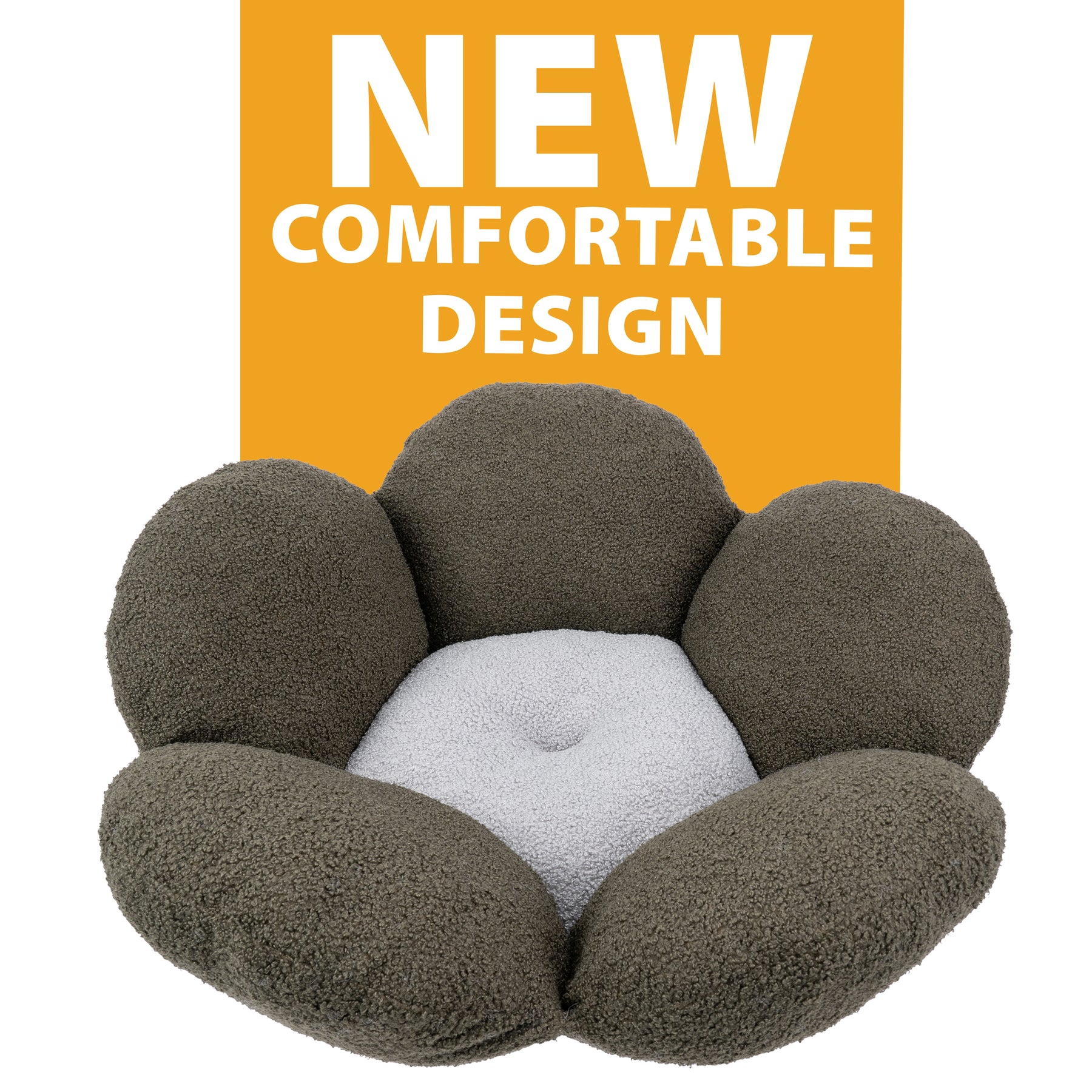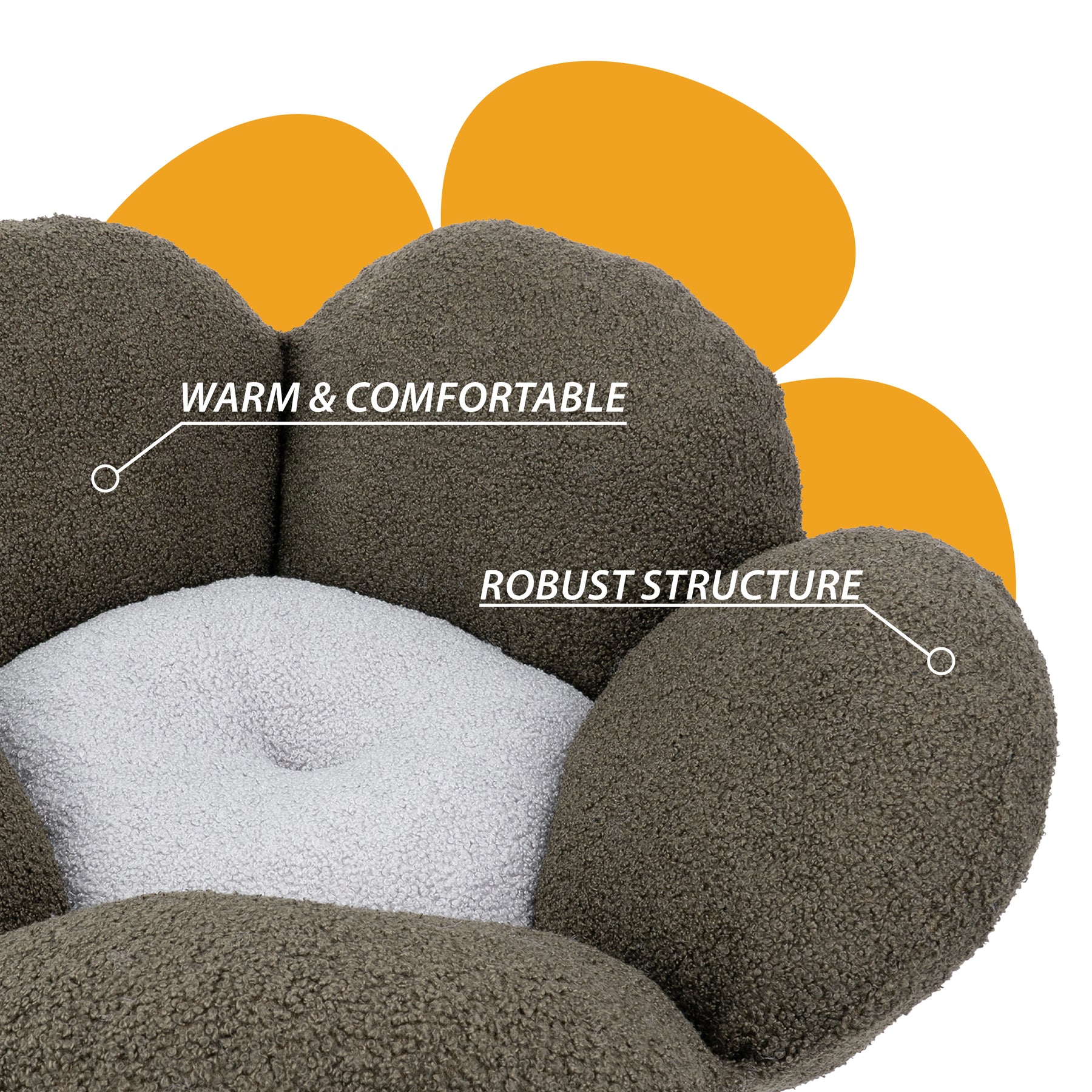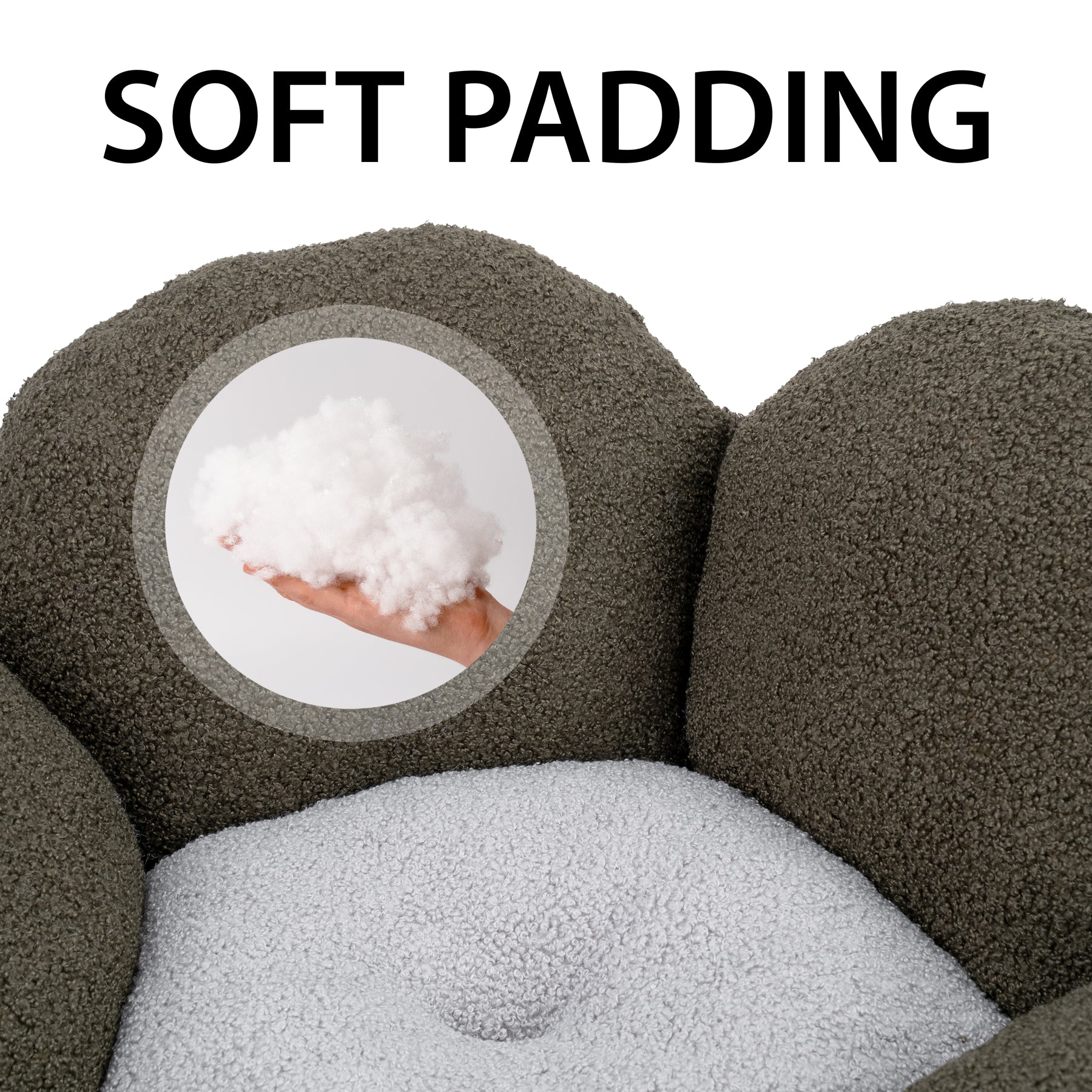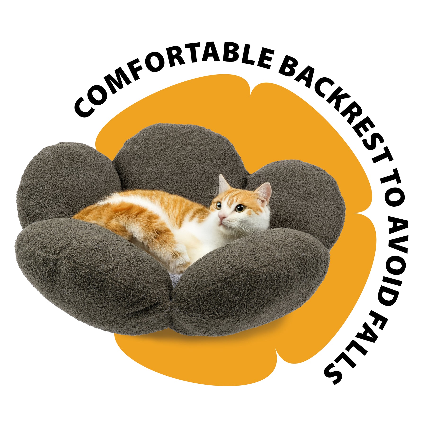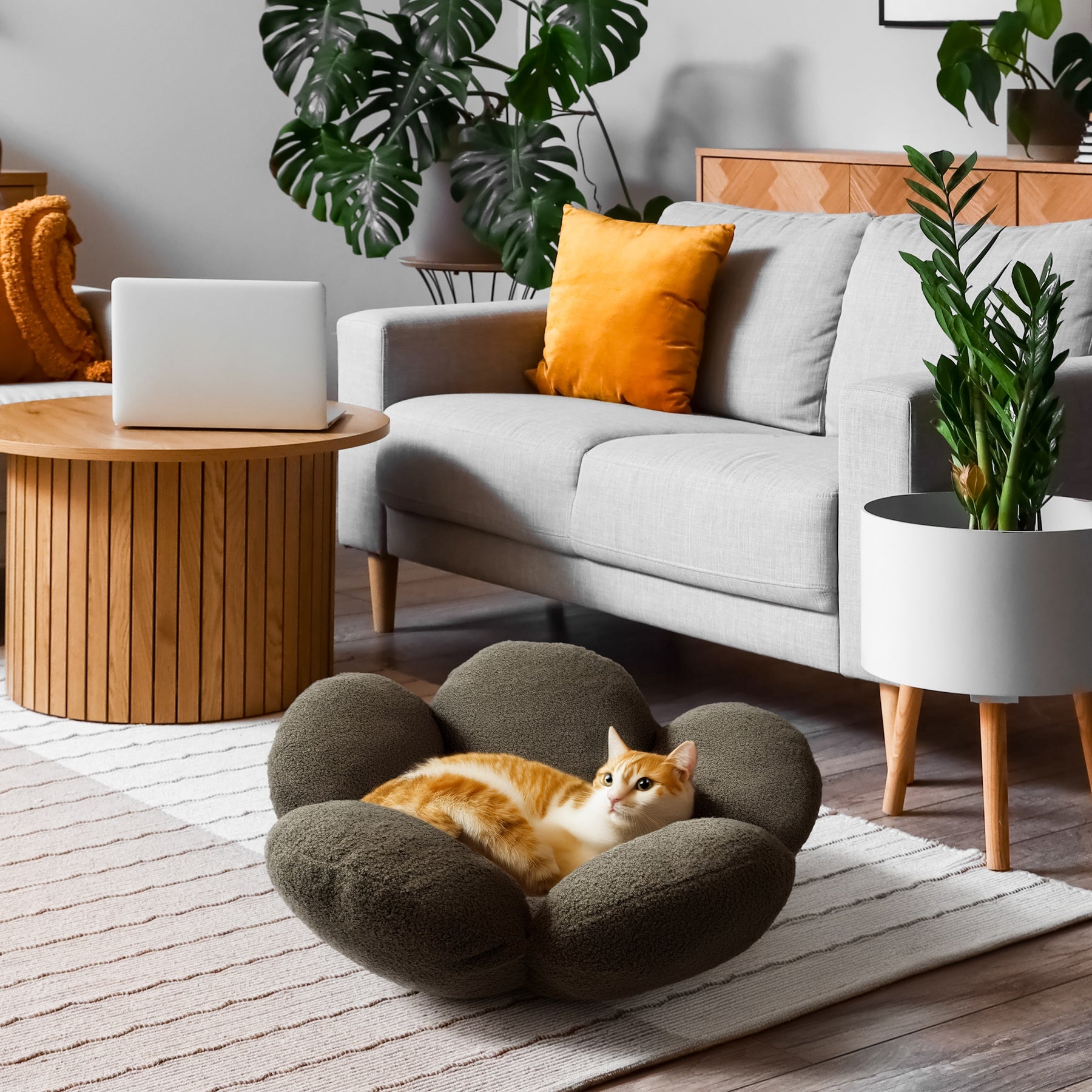 Cama con forma de flor para perros y gatos en suave tejido bouclé sintético, acolchada con laterales elevados acogedores, elegante y confortable