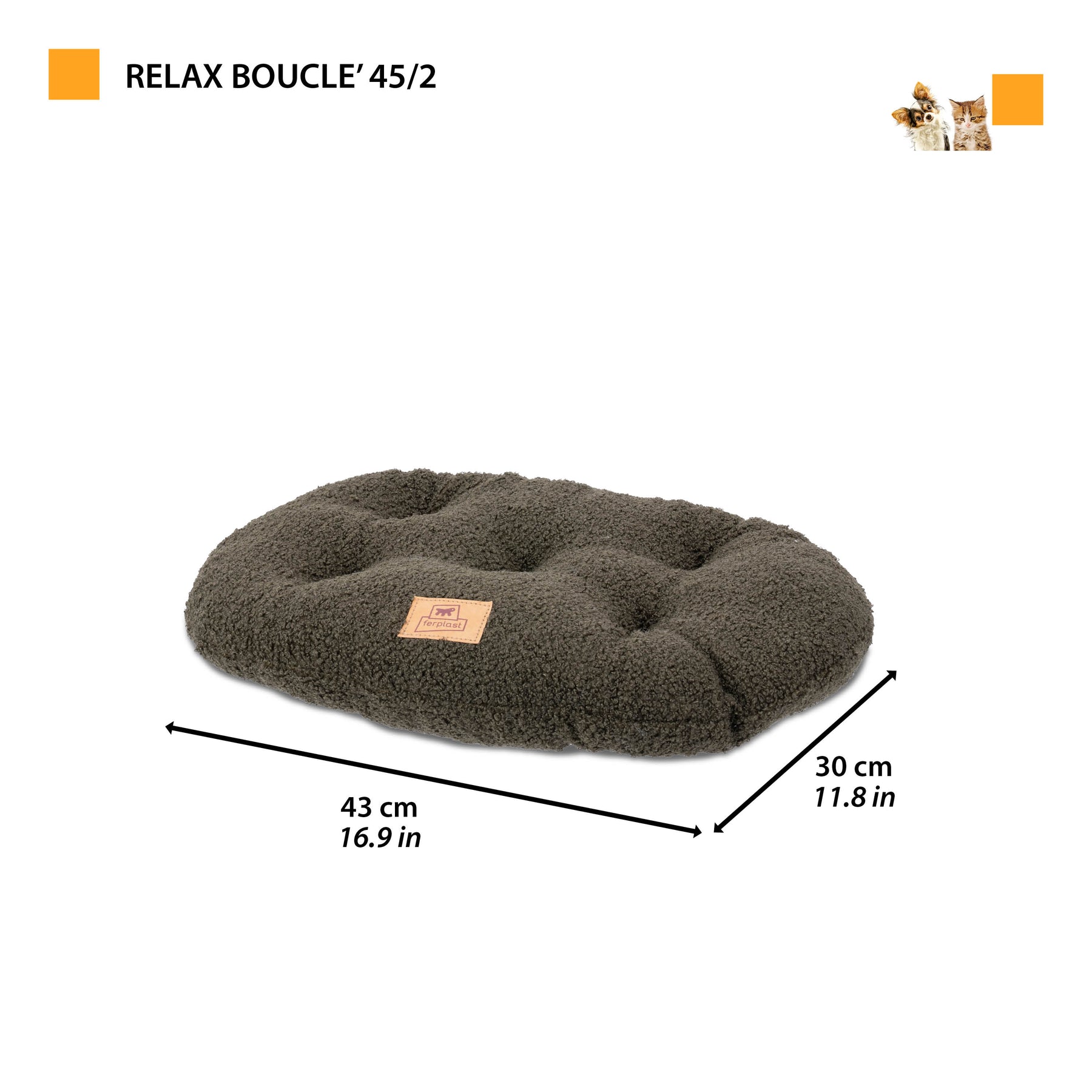 El cojín Relax Bouclé para perros y gatos une estilo y confort en un accesorio perfecto para el descanso de tu mascota. Realizado en suave tejido bouclé sintético, extra suave y cálido, presenta una forma ovalada con acolchado interior que garantiza soporte y bienestar total. Acogedor y elegante, es ideal para ofrecer a tu amigo de cuatro patas un espacio personal que sea al mismo tiempo funcional y refinado, perfecto para la temporada de invierno y para los animales más frioleros.