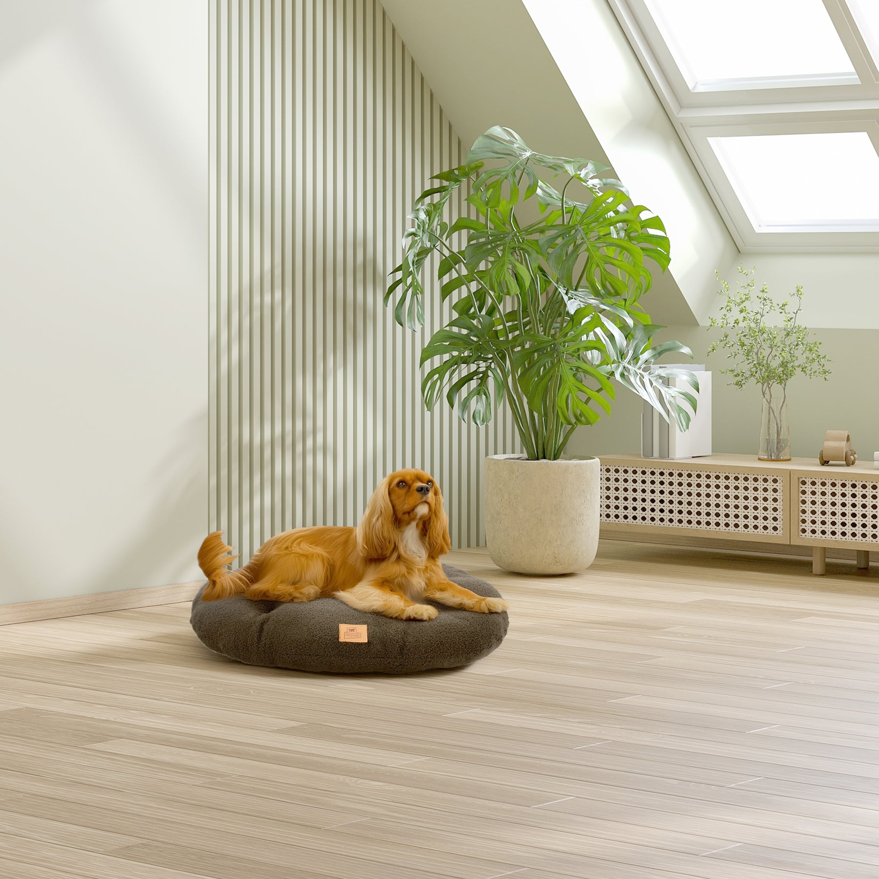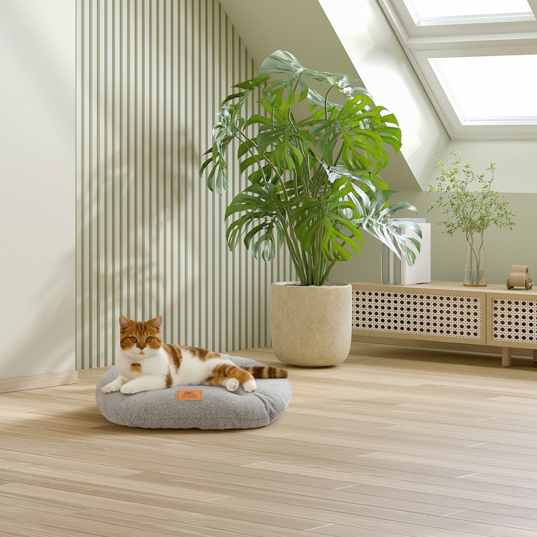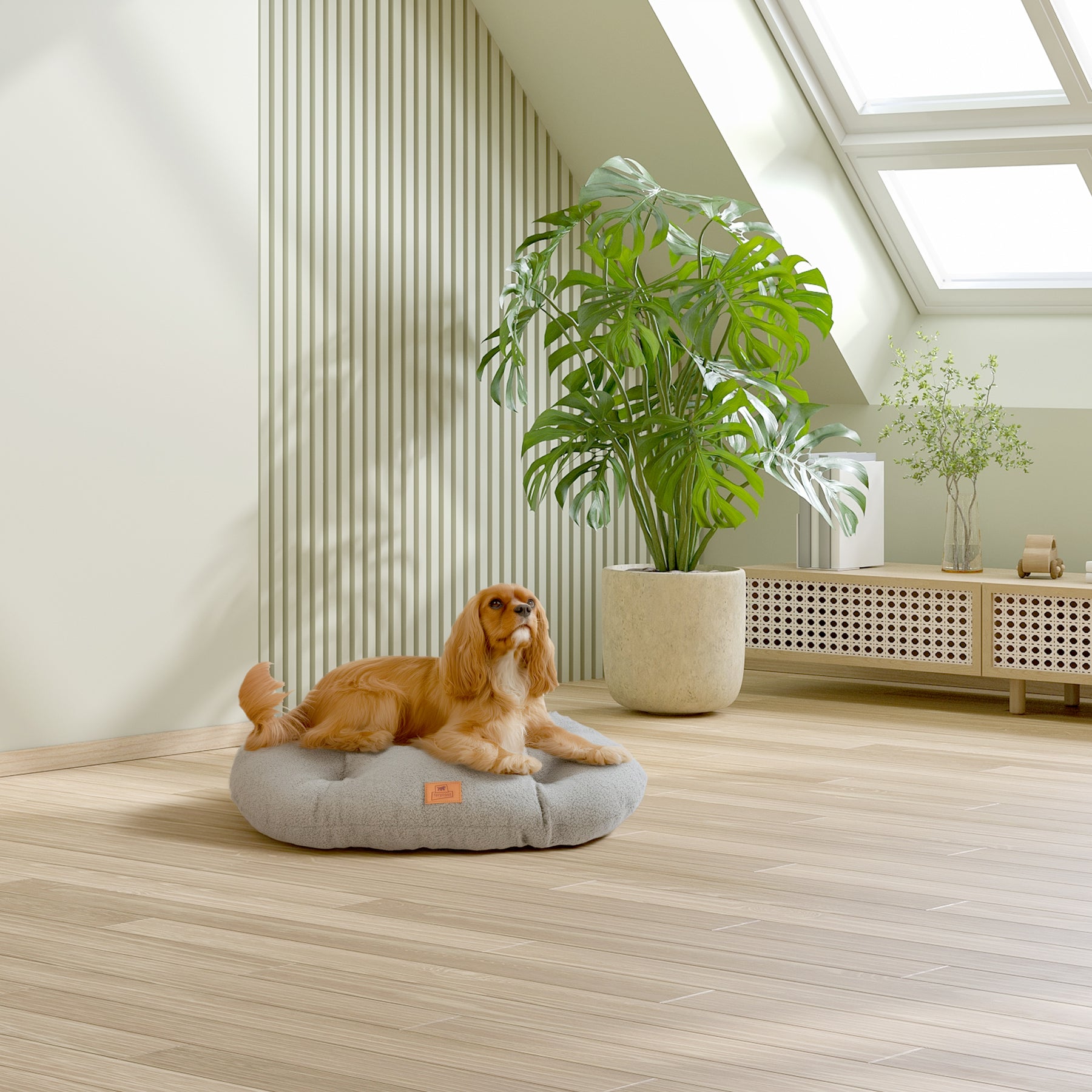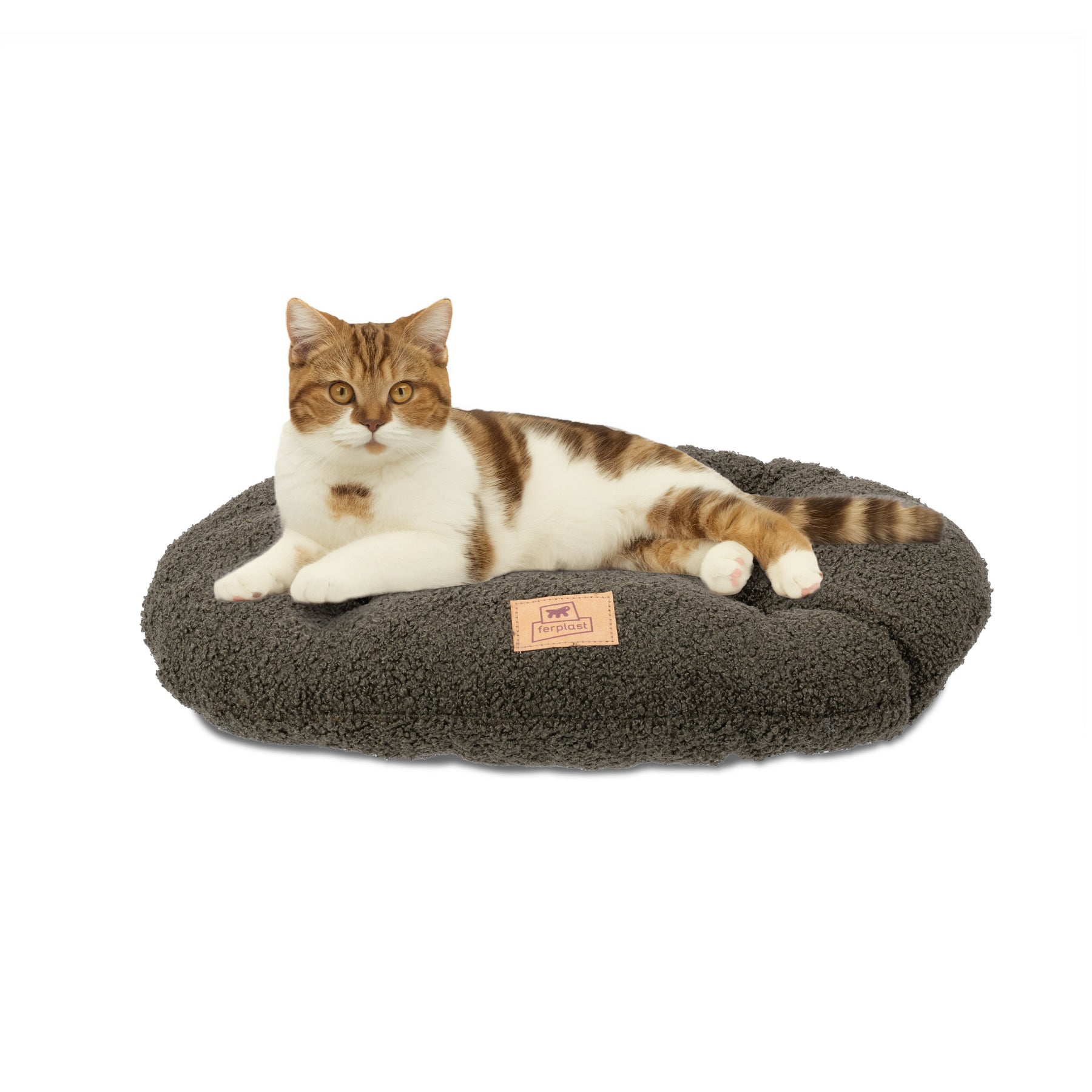 Cojín para perros y gatos en suave tejido bouclé sintético, elegante y acogedor, con acolchado interior