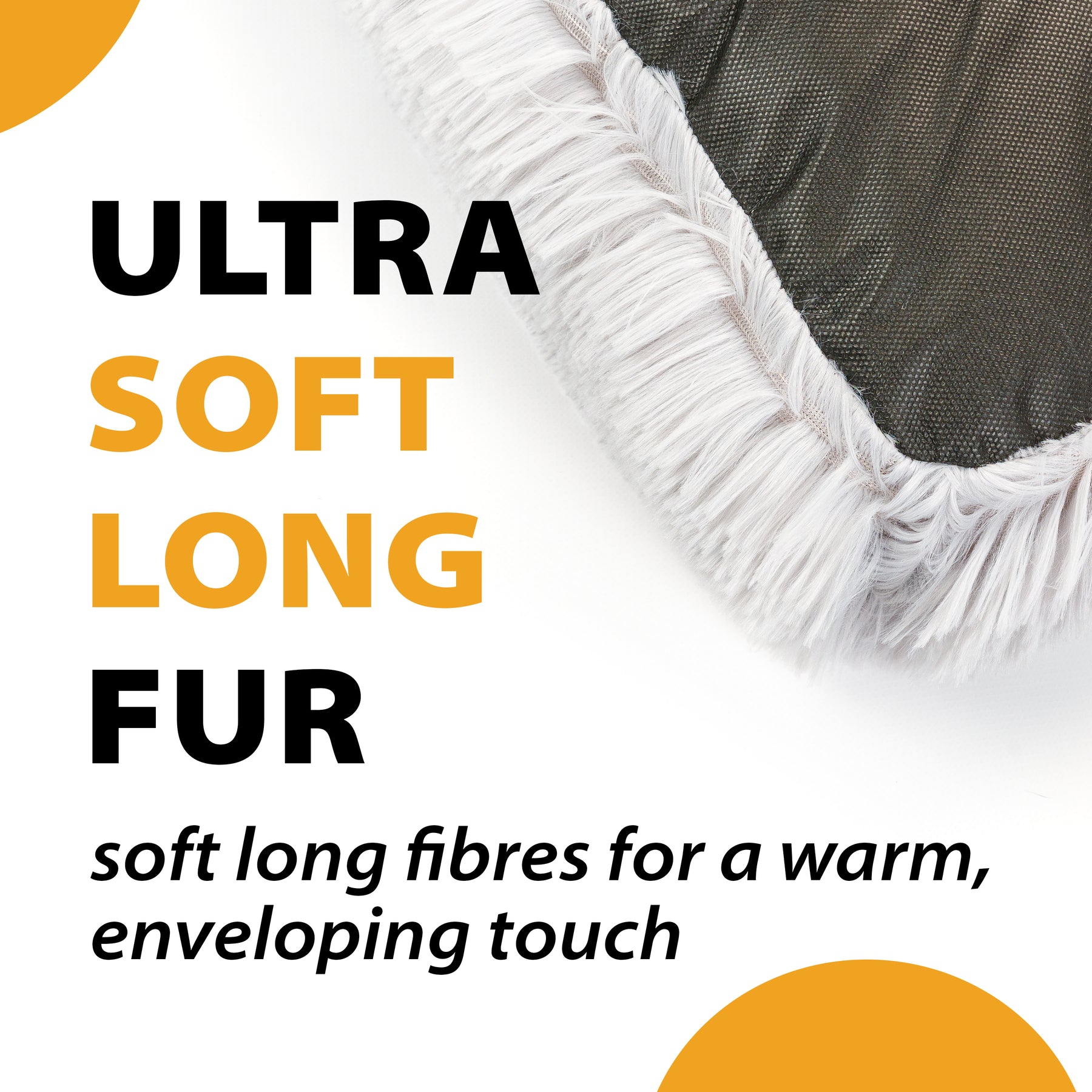 Fabricado en felpa de pelo largo ultra suave, crea una superficie envolvente y acogedora donde tu peludo se sentirá seguro y relajado.
