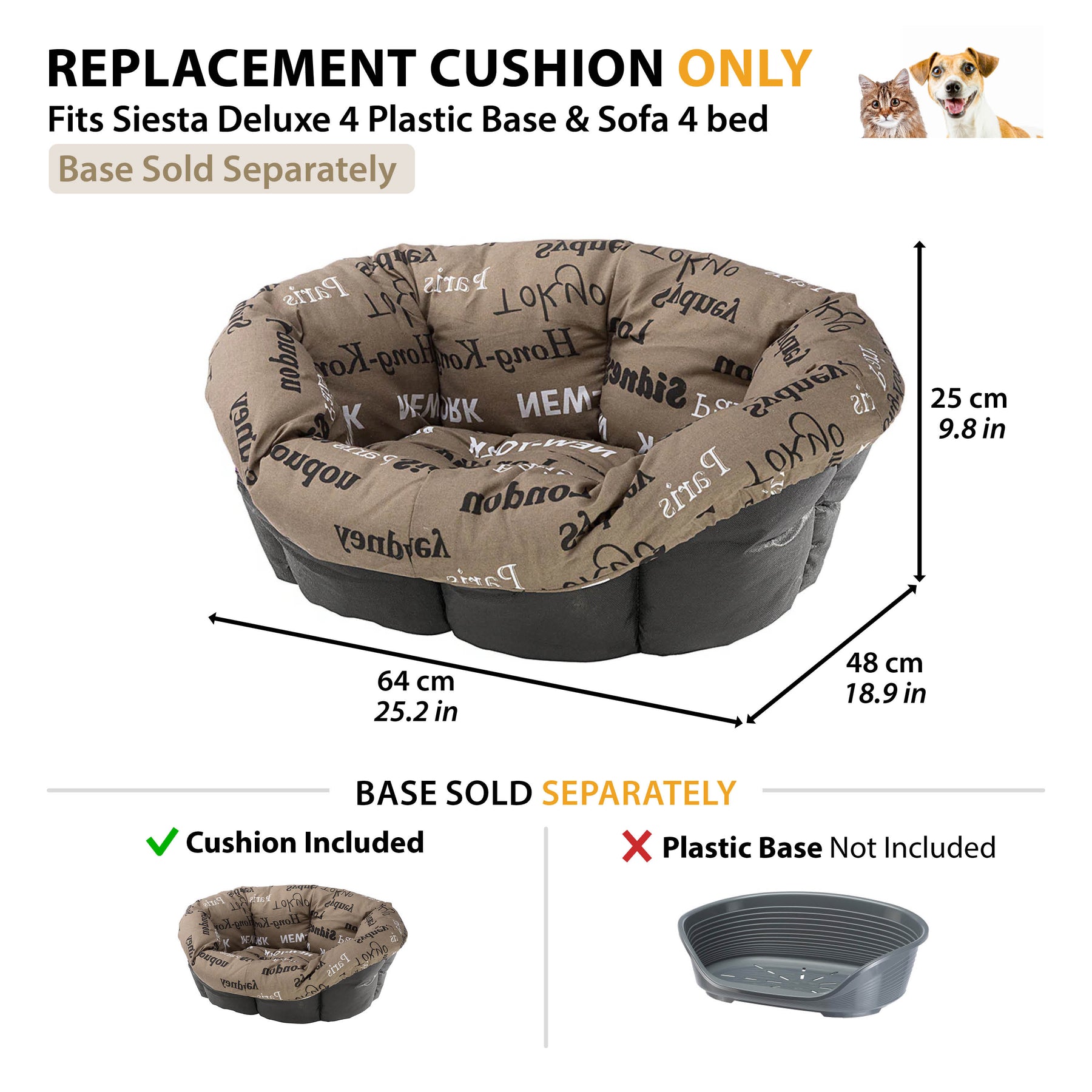 Estás buscando un cojín de recambio para tu cama siesta Siesta Deluxe porque el antiguo cojín está demasiado viejo? No busques más, la has encontrado! Se llama Sofà Cushion! Este blando cojín de algodón es suave y fácil de poner en camas gracias a sus lados especiales con una cinta para asegurarlo a la cama. Cuando se ensucia se puede lavar a máquina a 30ºC.