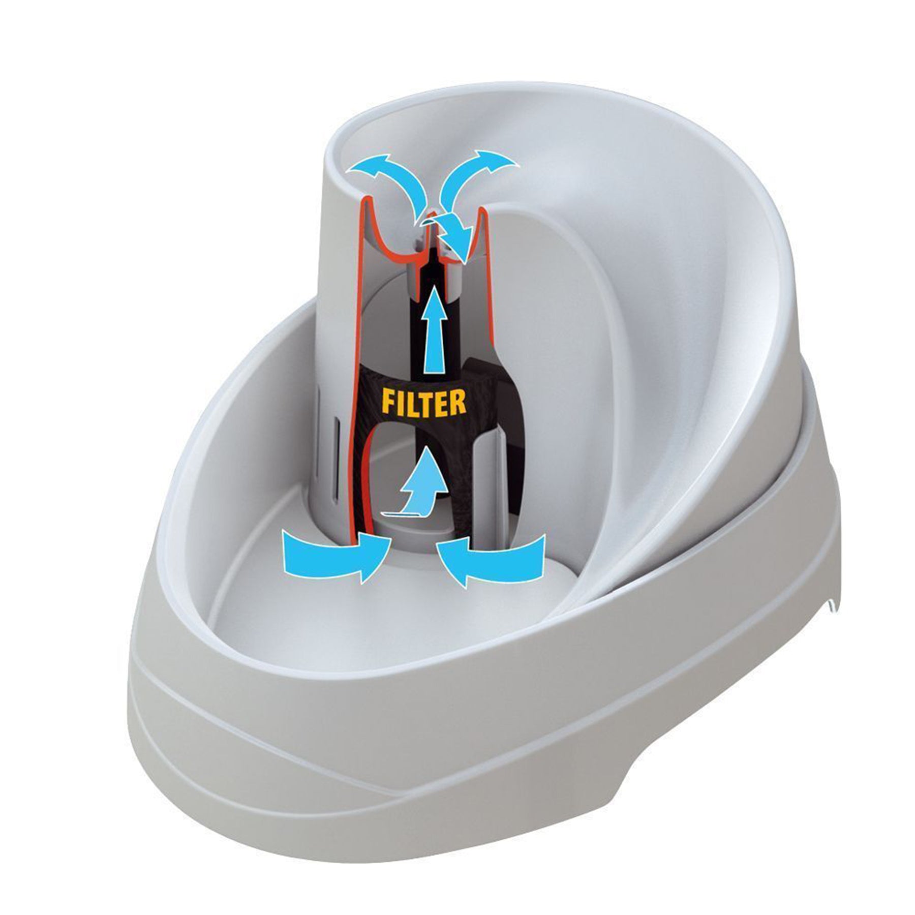 El tejido no tejido actúa como primera capa de filtración, capturando impurezas y partículas de suciedad. Las resinas de intercambio iónico reducen el contenido de calcio, previniendo la acumulación de cal y mejorando la calidad del agua. El carbón activado neutraliza los olores desagradables y las sustancias que podrían alterar el sabor del agua, haciéndola siempre agradable para su perro o gato.