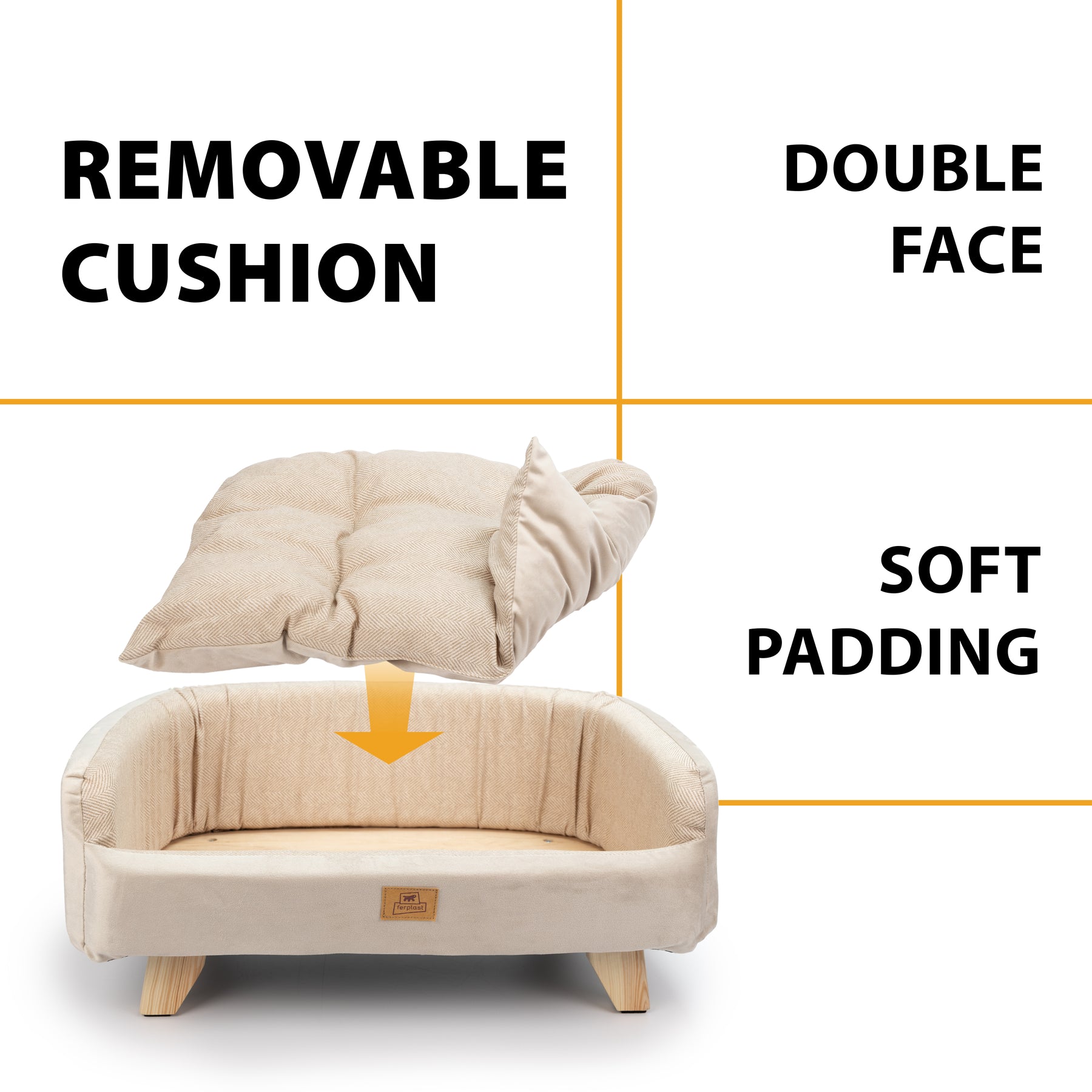 Los fieltros antirrayaduras en las patas protegen las superficies y aseguran estabilidad. Gracias a su montaje sencillo y a sus dos tamaños disponibles, Yuki es perfecta para perros y gatos pequeños que buscan una cama refinada, cómoda y duradera.